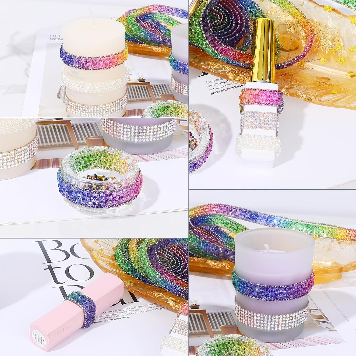 - Wide Applications: The bling rhinestone sticker strip is suitable for many DIY decorations, Rainbow sticker ribbon for accessories pride month decorations,mirrors, candles, vases, photo frames, costumes, home decor, offices, gardens, cars, personalized phone cases, jewelry boxes, and other places.