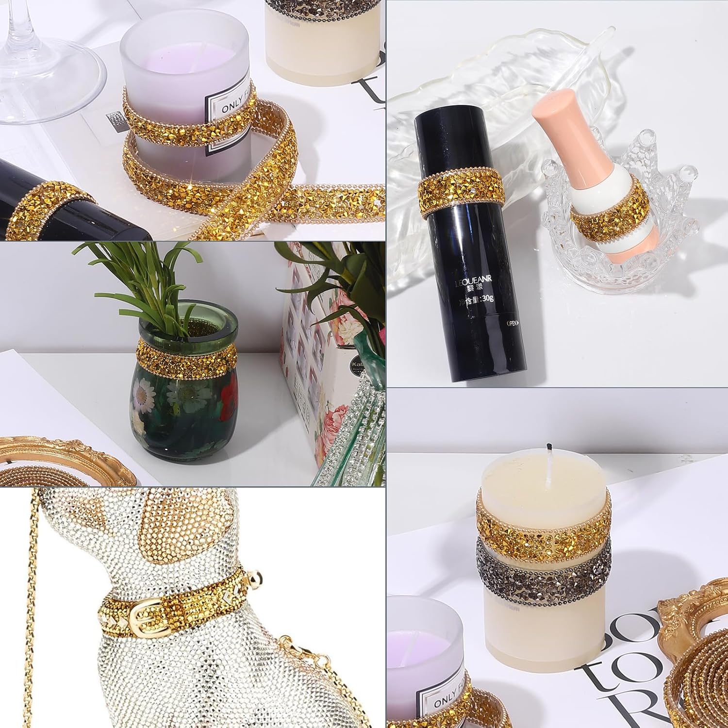 - Gold Rhinestone Ribbon: 1 roll of self-adhesive rhinestone ribbon Sticker, approx 3 yards in length, 1.5cm/0.6inch in width. (PACKAGE CONTENT)