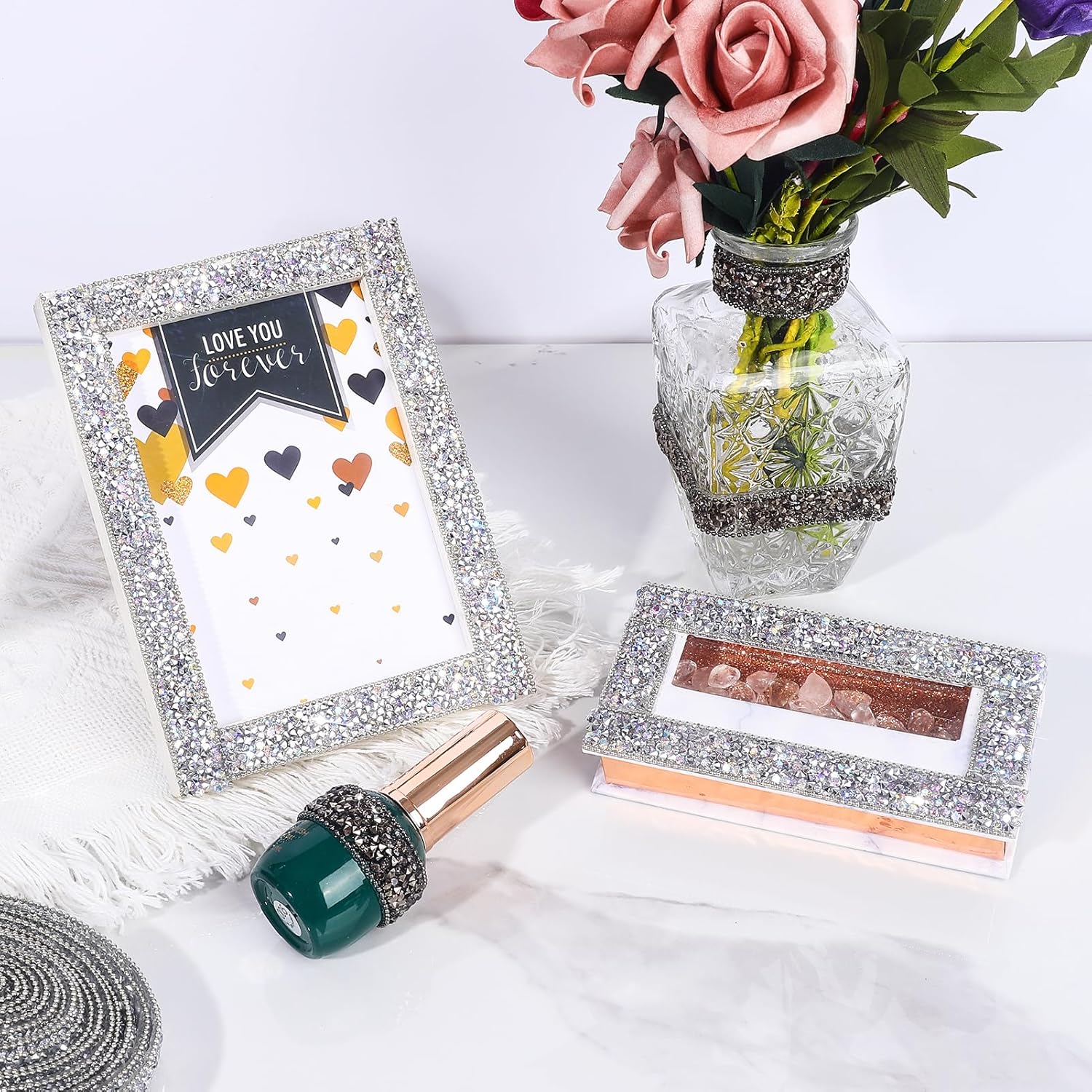 - Wide Applications: The bling rhinestone sticker strip is suitable for many DIY decorations, mirrors, candles, vases, photo frames, costumes, home decor, offices, gardens, cars, personalized phone cases, jewelry boxes, and other places.