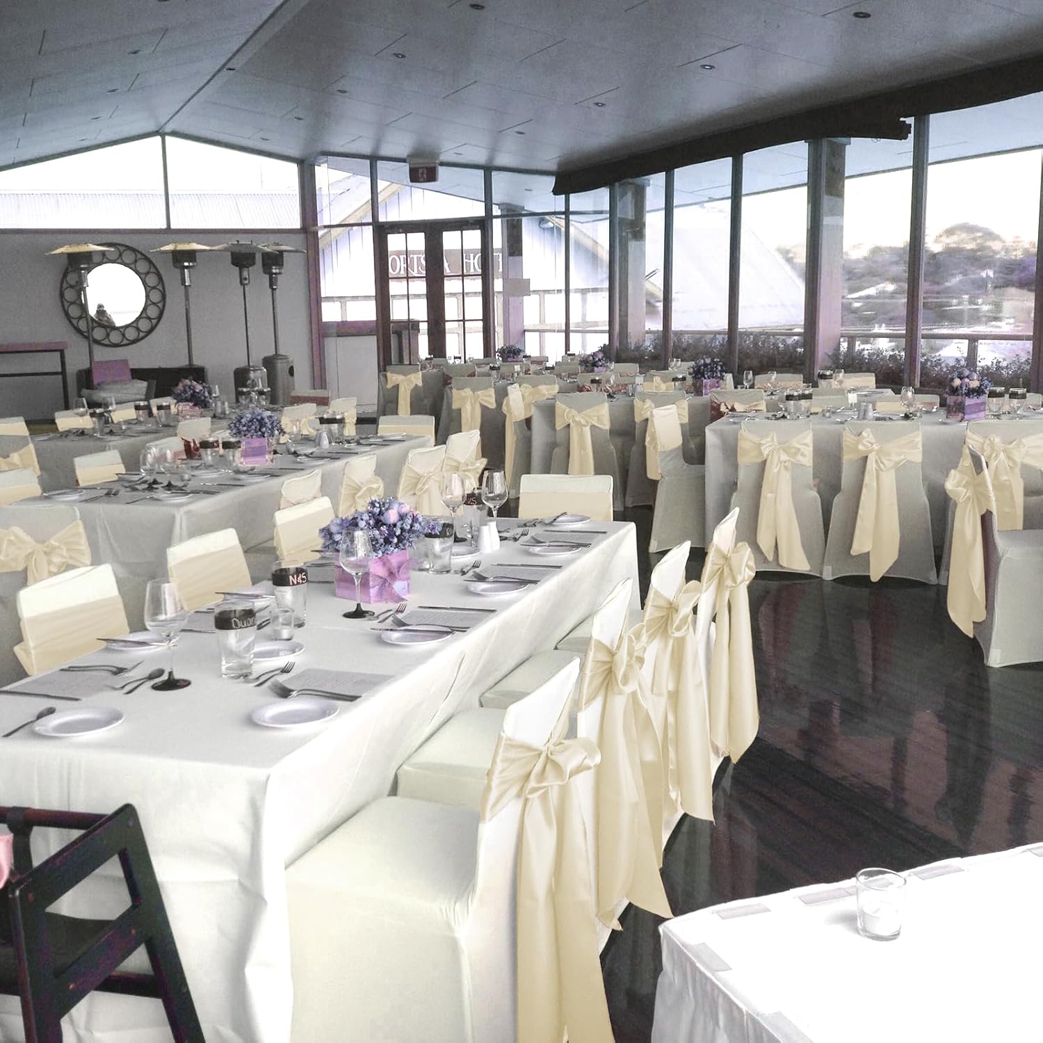 fani 60 PCS Ivory Satin Chair Sashes Bows Universal Chair Cover for Wedding Reception Restaurant Event Decoration Banquet,Party,Hotel Event Decorations (7 x 108 inch)