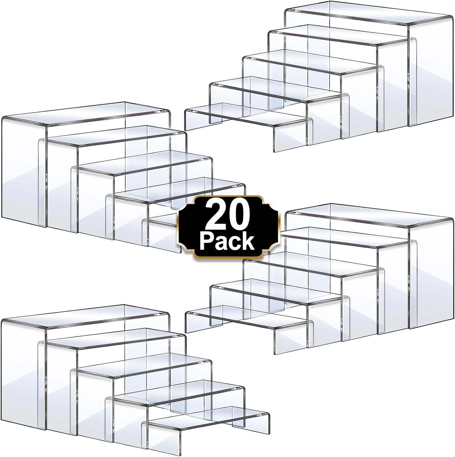 Aheroi Acrylic Risers, 20 Pcs 4 Set Display Stands, Clear Rectangular Risers for Decor, Cupcake Funko, Shoe Display (1-3-4-5-6IN)