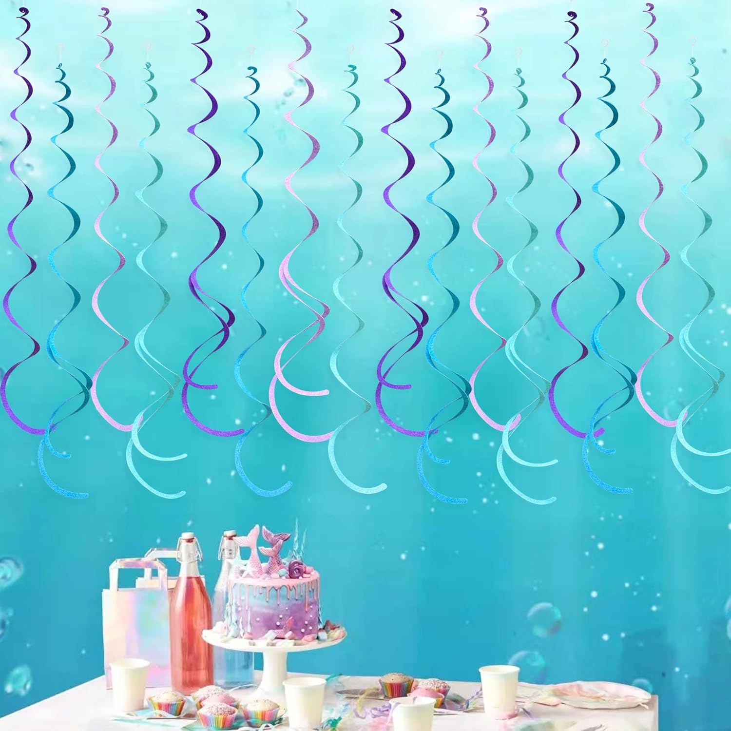 - Package Contains - 36 packs of mermaid color swirl party streamer,Each swirl can extends to approximately about 2.62 feet long,Meeting daily general needs.Comes with 40 plastic hooks for hanging.