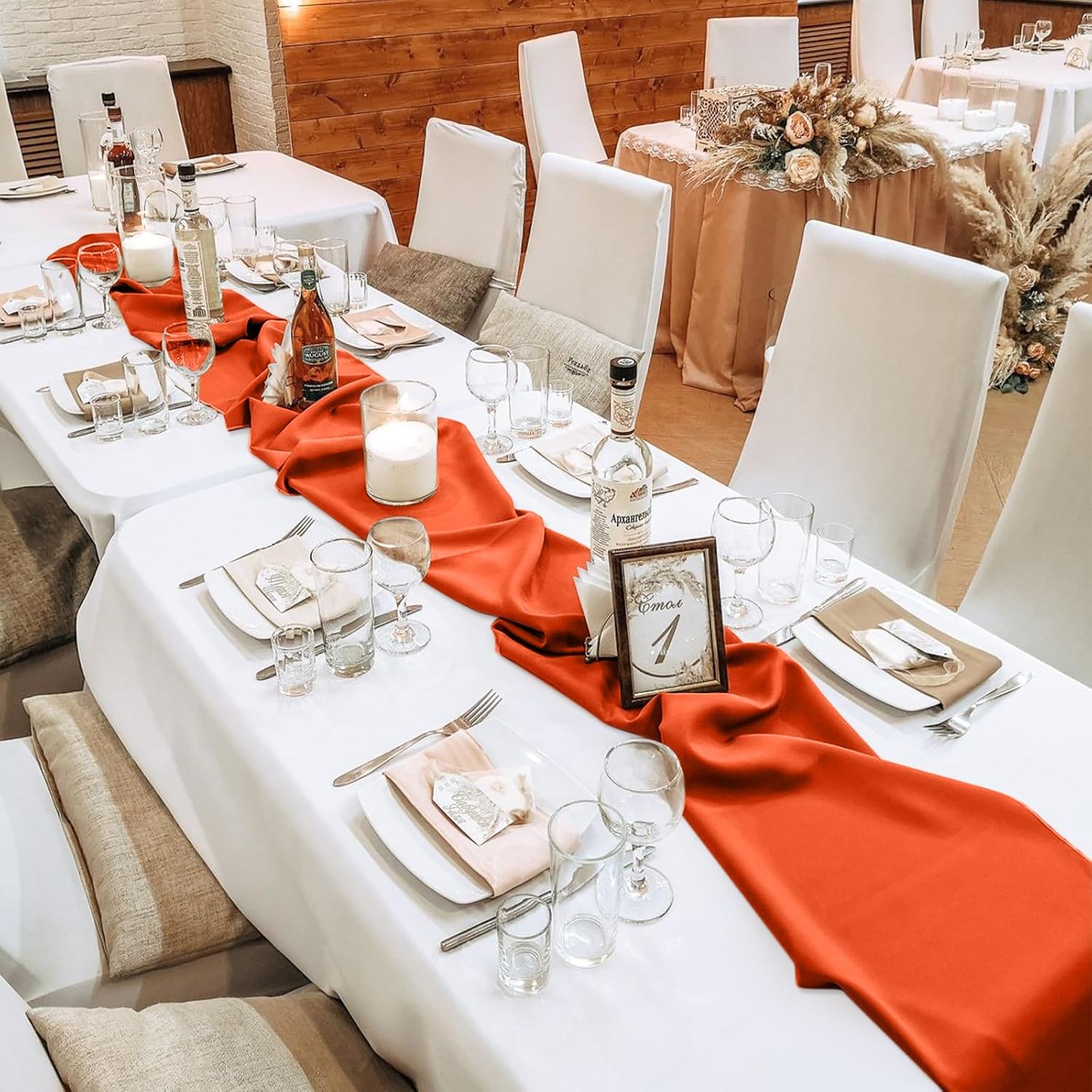 - PACKAGE CONTENTS:You will get 10 pieces of chiffon tablecloths, single tablecloth size: 30 x 300cm/12 x 120in. Each tablecloth is equipped with 2 white ribbons, which can be used to tie the sides to fix, the quantity is enough for wedding banquet and various parties, our tablecloths are suitable for tables with 6-8 seats