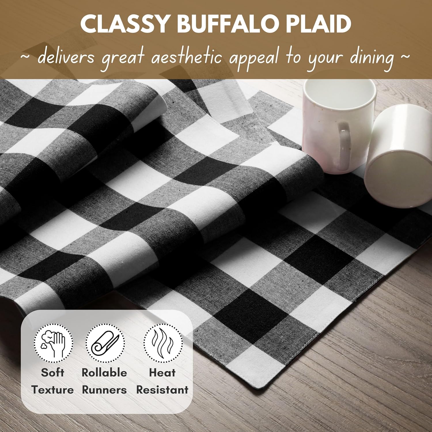 - PERFECT FOR GATHERINGS: Whether it’s a casual family dinner, birthday celebration, or thanksgiving feast, our buffalo checked runners enhance the ambiance.