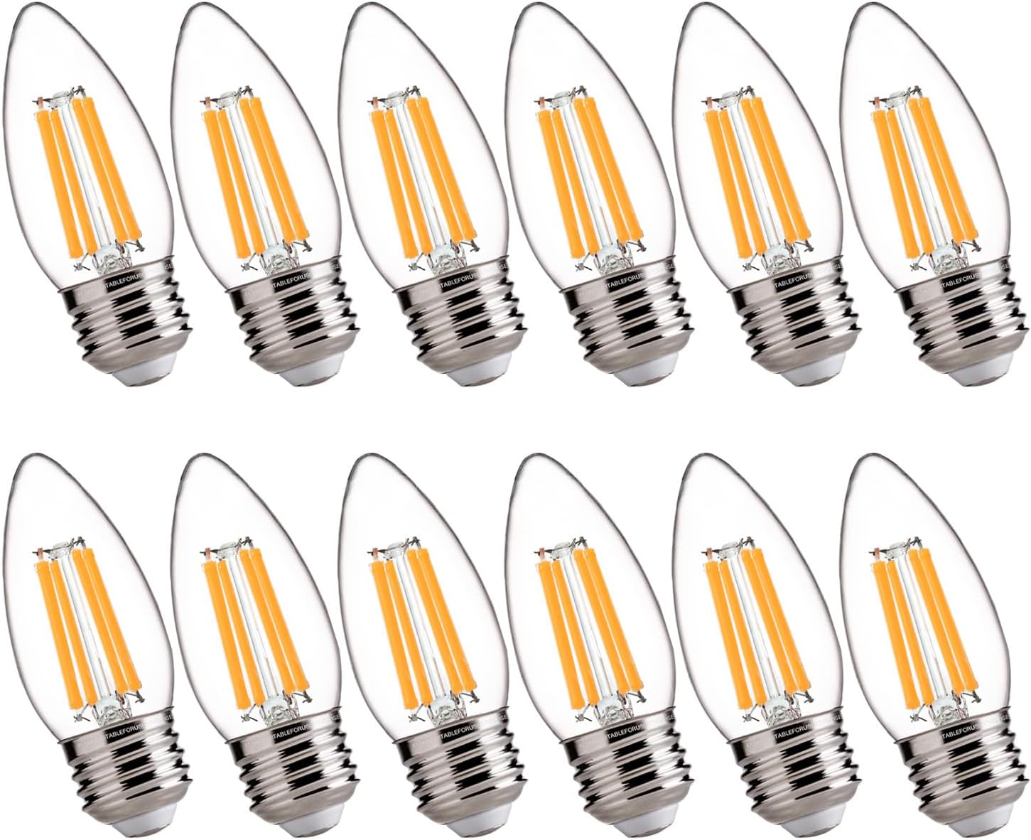 FLSNT 100W Equivalent LED Candelabra Bulbs, 800LM Dimmable LED Chandelier Light Bulbs, 2700K Soft White, E26 Base, 12 Pack UL,CA65 Listed.