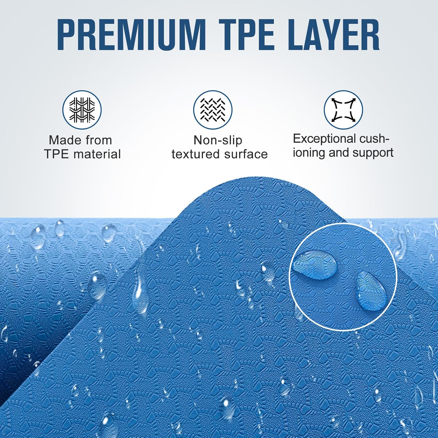 - NON-SLIP & ECO-CONSCIOUS: This thick exercise mat combines natural rubber and recyclable TPE for a durable and eco-friendly practice. Its textured surfaces on both sides ensure a secure grip. And the rubber layer provides exceptional grip even during sweaty sessions.
