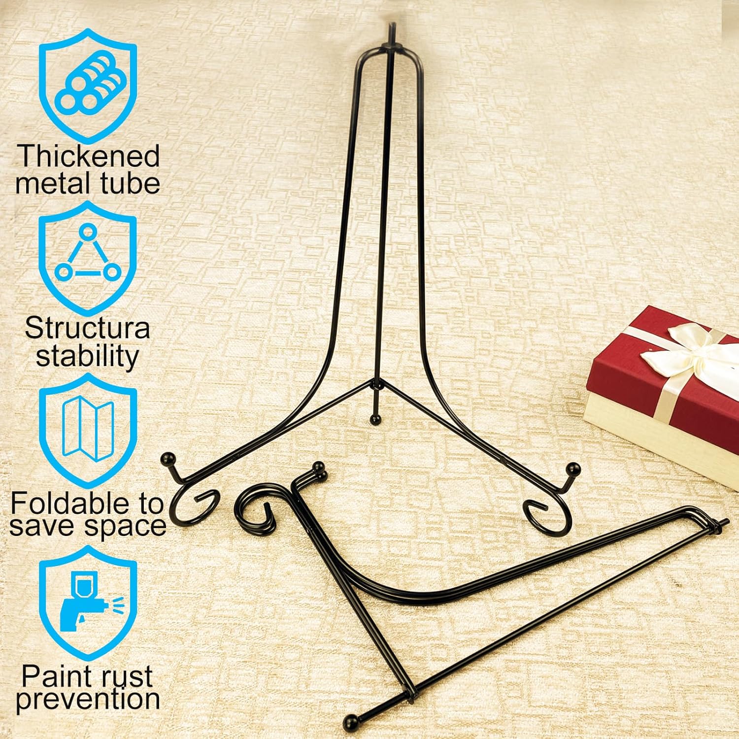 2PCS Premium Black Iron Plate Stands for Display 10 Inch, Decorative Solid Metal Plate Holders for Displaying, Mini Easel, Frame, Book, Card, Plaque, Bowl, Picture Stands for Display