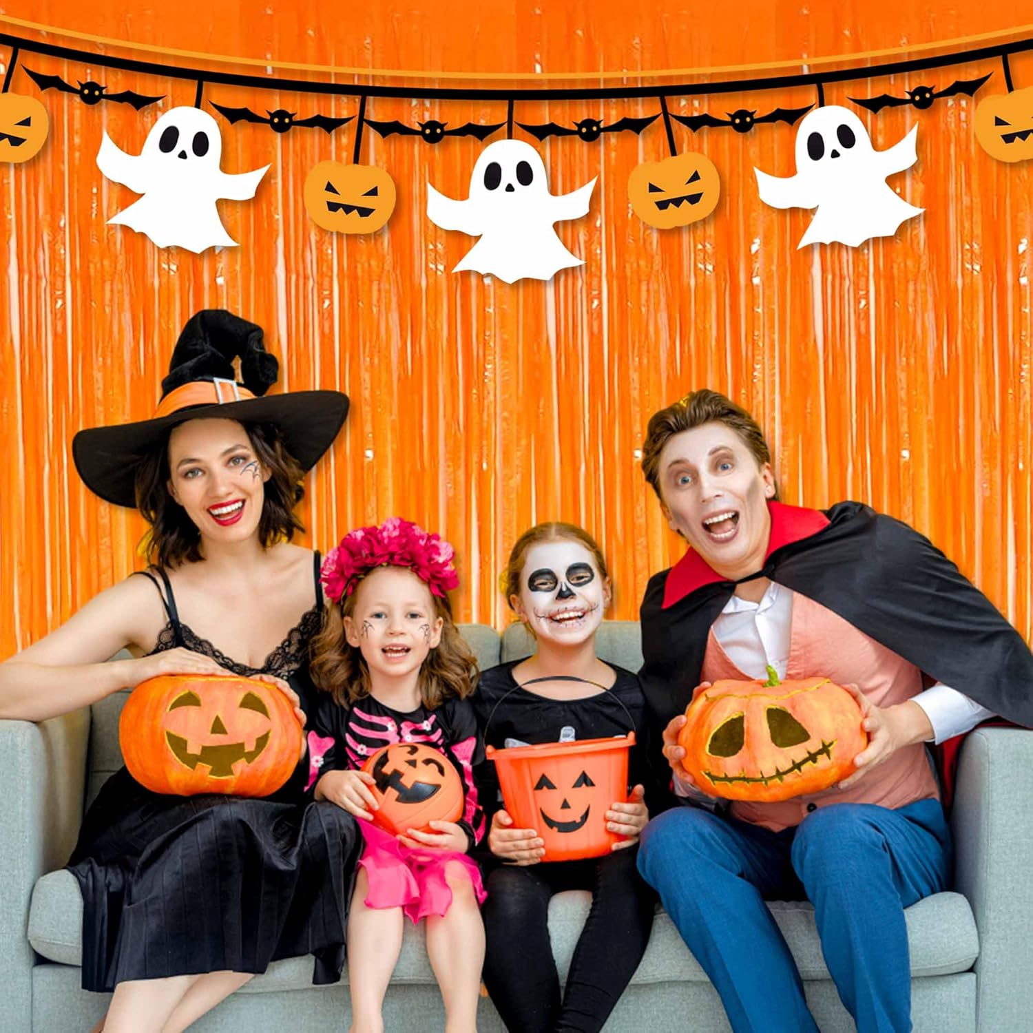 6 Pack Macaron Orange Foil Fringe Curtains Backdrop, 3.28 x 8.2 Ft Metallic Streamers Tinsel Curtains Background for Photo Booth, Birthday, Weddings, Carnivals, Graduation, Themed Party Decorations
