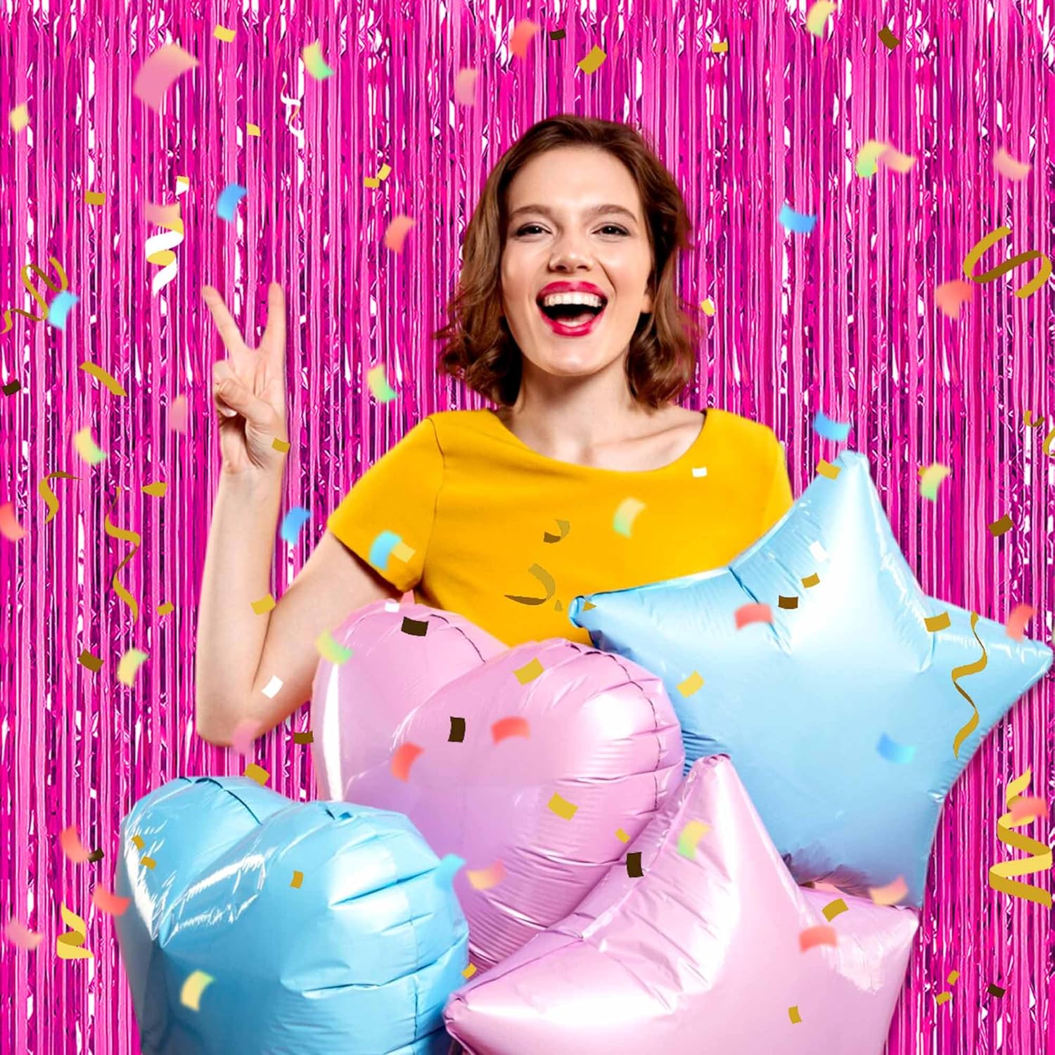 6 Pack Fuchsia Foil Fringe Curtains Backdrop, 3.28 x 8.2 Ft Metallic Streamers Tinsel Curtains Background for Photo Booth, Birthday, Weddings, Carnivals, Graduation, Themed Party Decorations