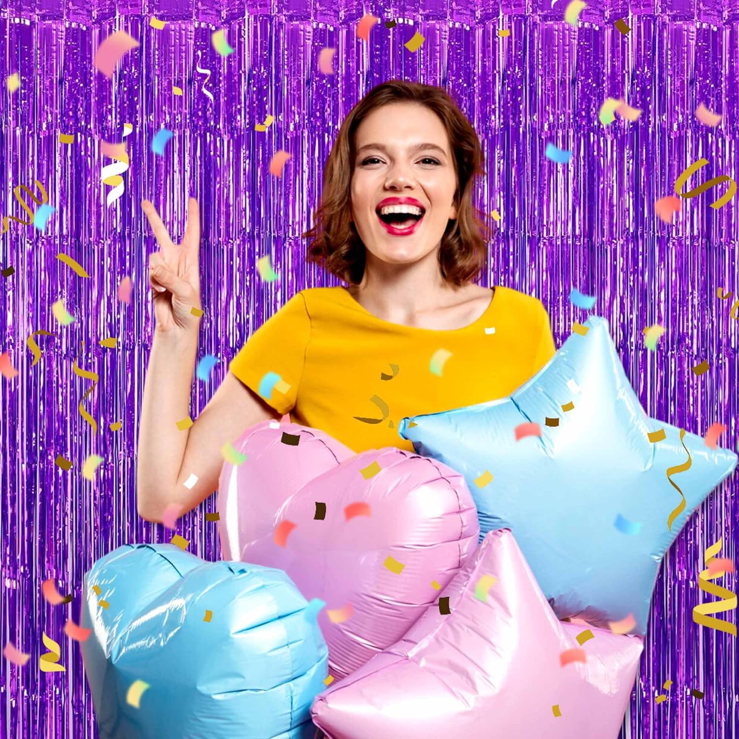 6 Pack Purple Foil Fringe Curtains Backdrop, 3.28 x 8.2 Ft Metallic Streamers Tinsel Curtains Background for Photo Booth, Birthday, Weddings, Carnivals, Graduation, Themed Party Decorations