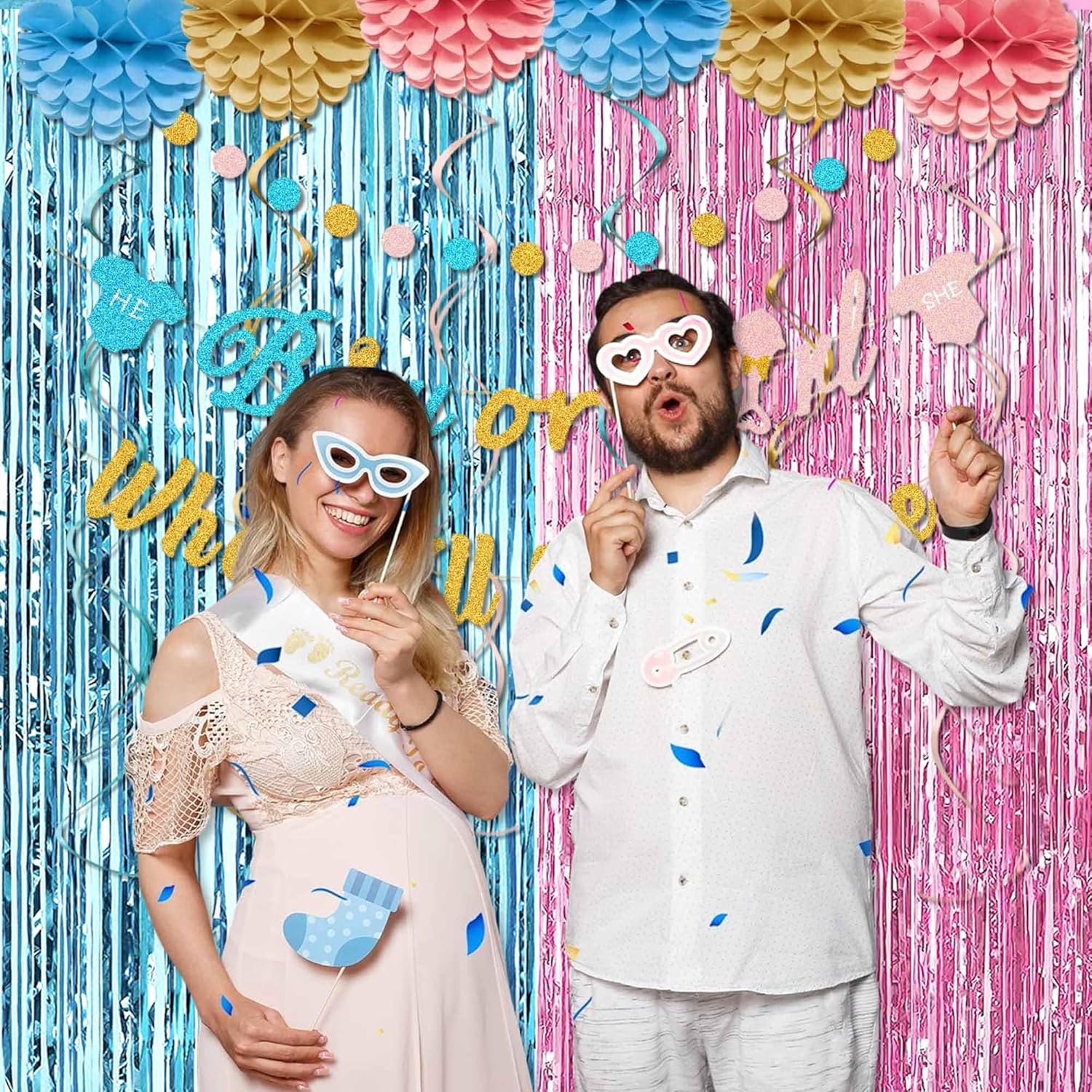 6 Pack Pink Blue Foil Fringe Curtains Backdrop, 3.28 x 8.2 Ft Metallic Streamers Tinsel Curtains Background for Photo Booth, Birthday, Weddings, Carnivals, Graduation, Themed Party Decorations