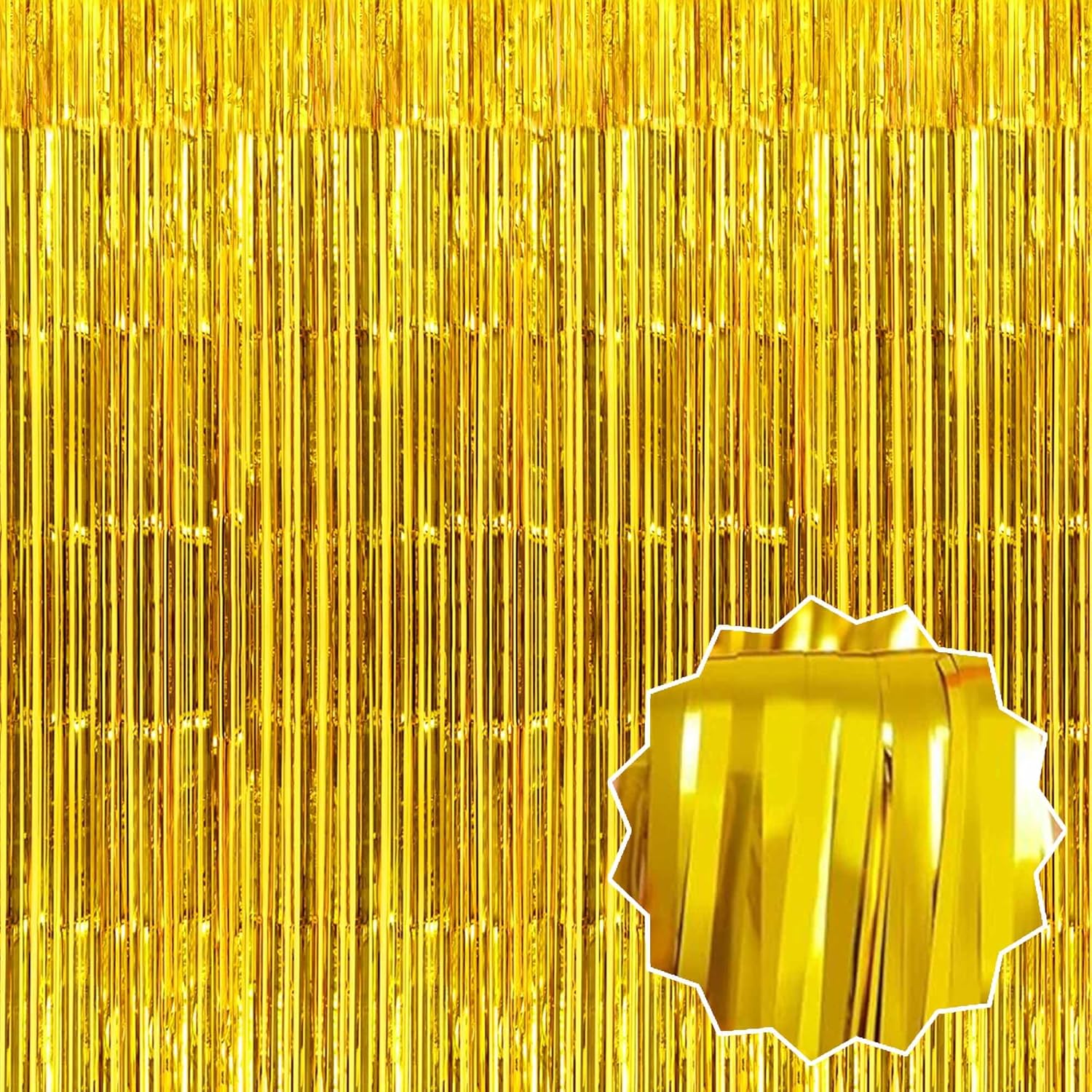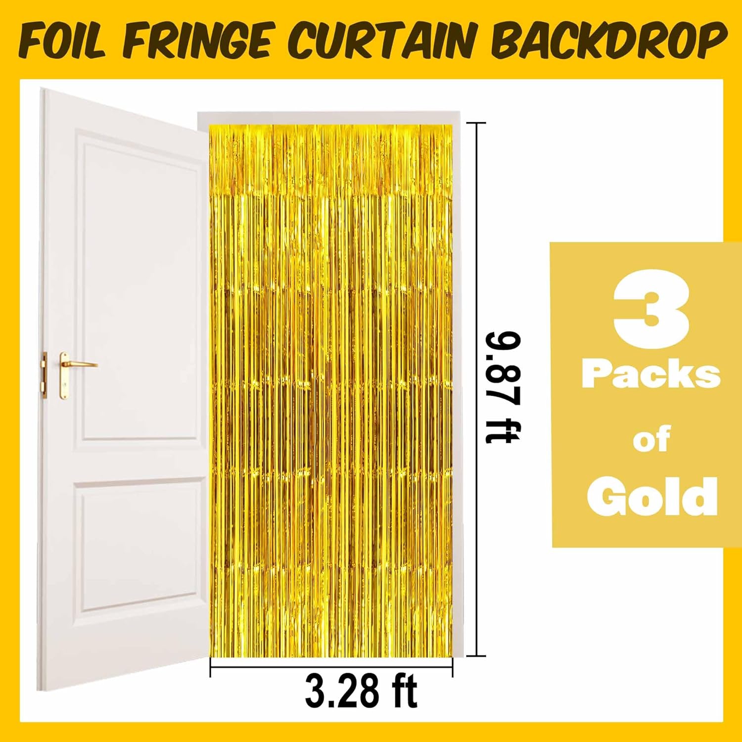 3 Pack Gold Foil Fringe Curtains Backdrop, 3.28 x 9.8 Ft Metallic Streamers Tinsel Curtains Background for Photo Booth, Birthday, Halloween, Christmas, Thanksgiving, New Year Party Decorations