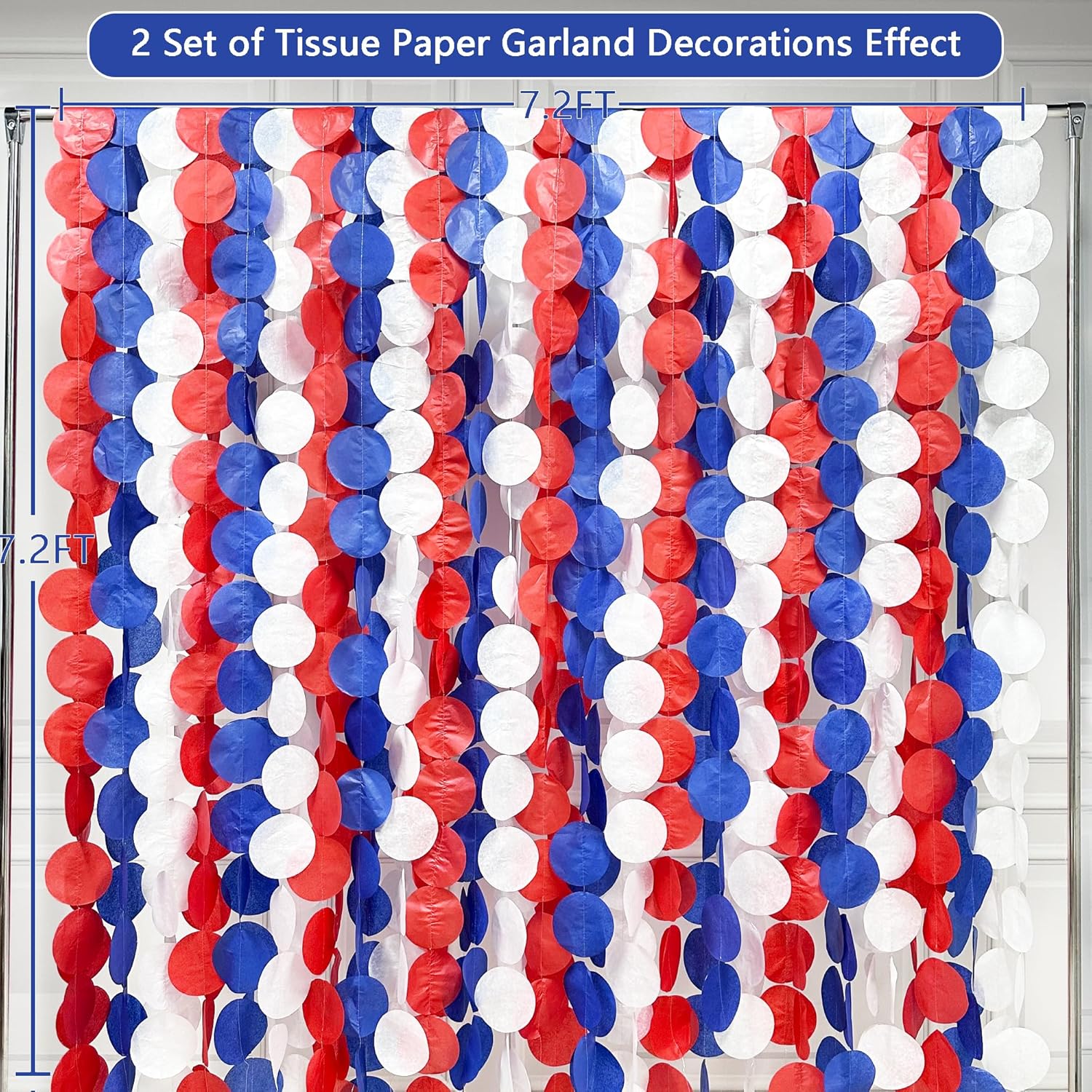 192Ft Royal Blue Red White Party Decorations Big Circle Dots Tissue Paper Backdrop Streamer Garland for 4th of July American USA National Day Patriotic Veterans Graduation Wedding Birthday Party