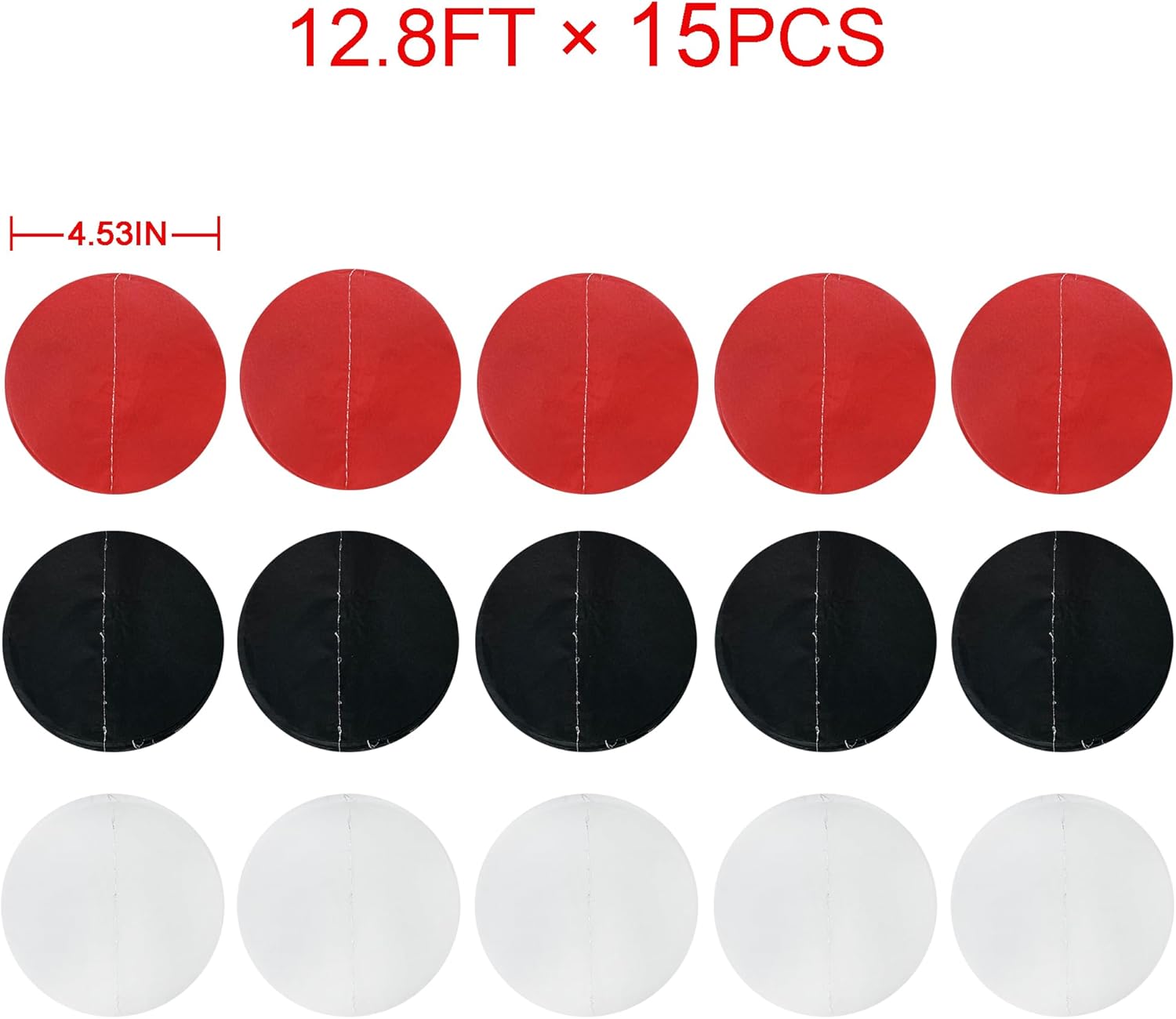 - 🔴PACKAGE CONTAINS- 15 packs of red black white circle dot party garland banner,each string is 12.8 feet/3.9 meters with 30 pcs polka dots, Total is 58.5meters/192 feet.
