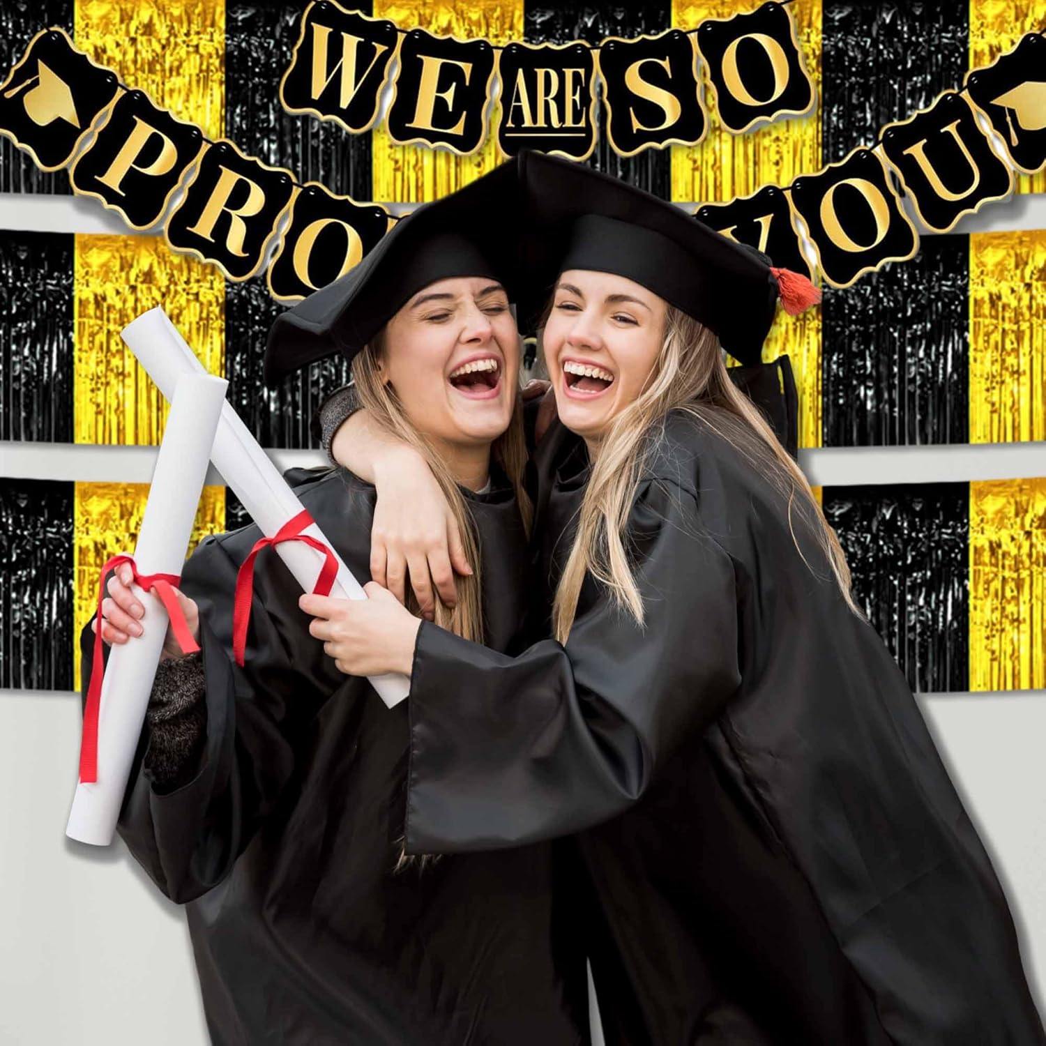 4 Pack 10 Ft Black and Gold Foil Fringe Garland Metallic Streamers Tinsel Banner Wall Hanging Garland Backdrop for Parade Floats, Halloween, Christmas, Thanksgiving, New Year Party Decorations