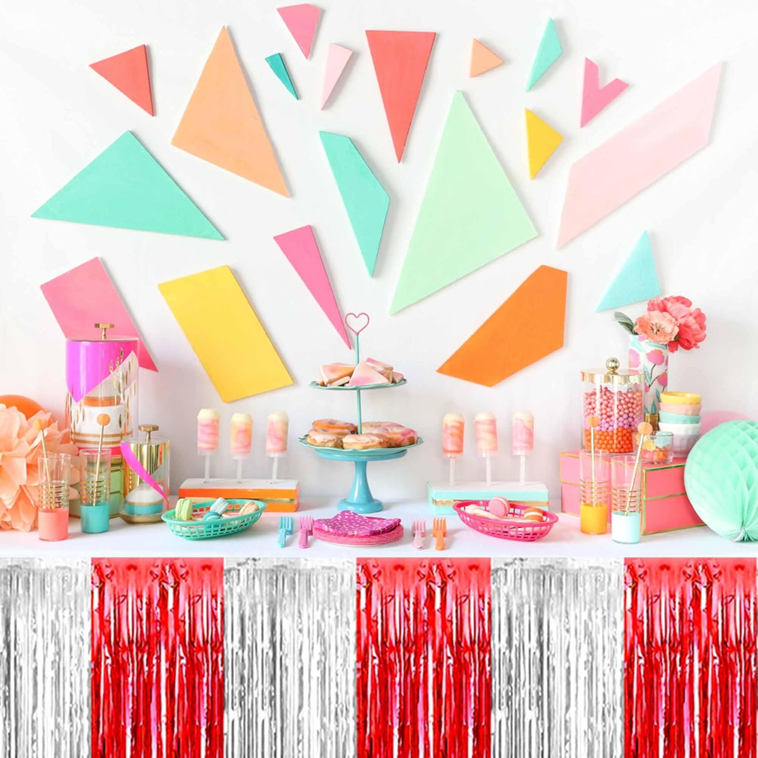 3 Pack Red and Silver Foil Fringe Table Skirts Metallic Tinsel Streamers Garland Banner Backdrop for Table Decor, Parade Float, Birthday, Wedding, Halloween, Christmas Party Decorations(29x108 In)