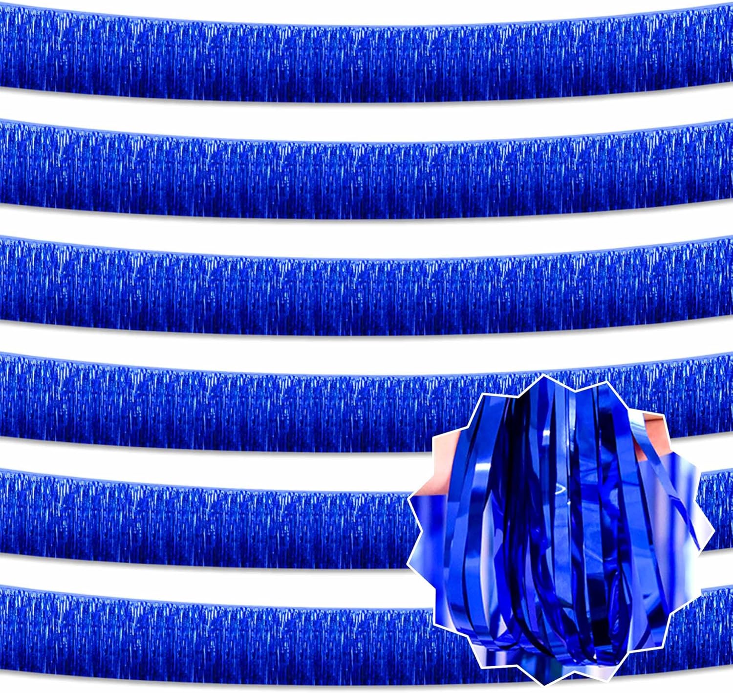 6 Pack 10 Ft Blue Foil Fringe Garland Metallic Streamers Tinsel Banner Wall Hanging Garland Backdrop for Parade Floats, Halloween, Christmas, Thanksgiving, New Year Party Decorations