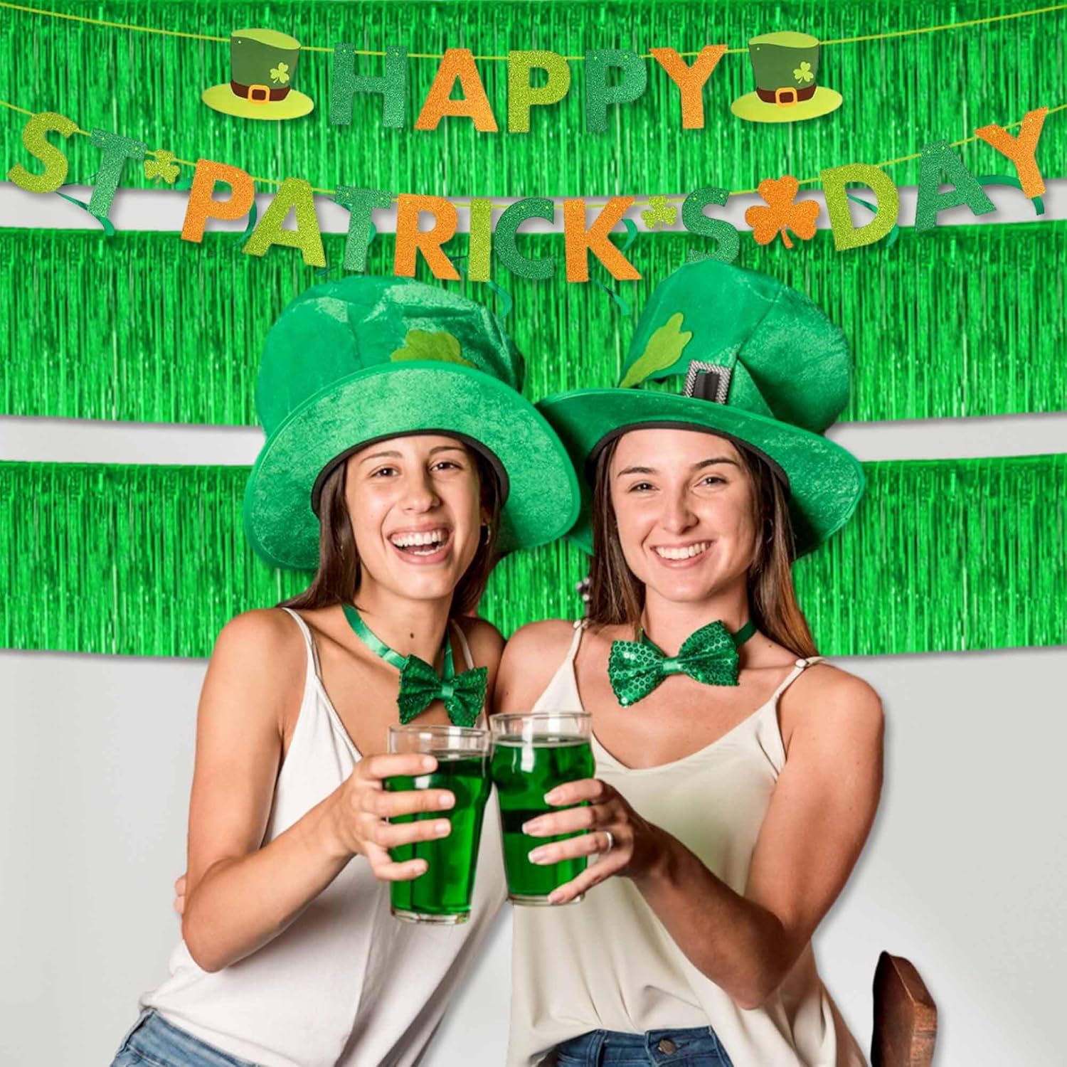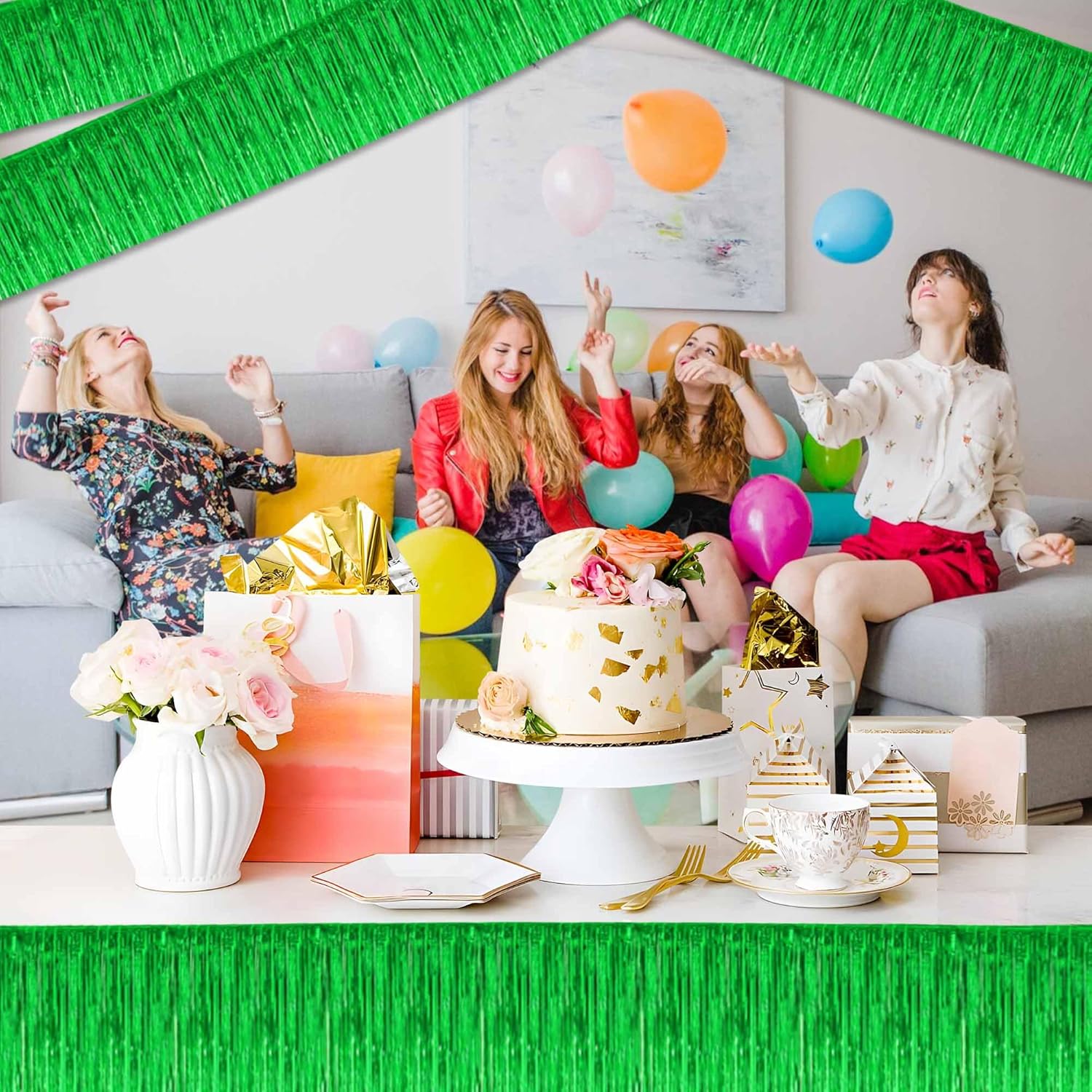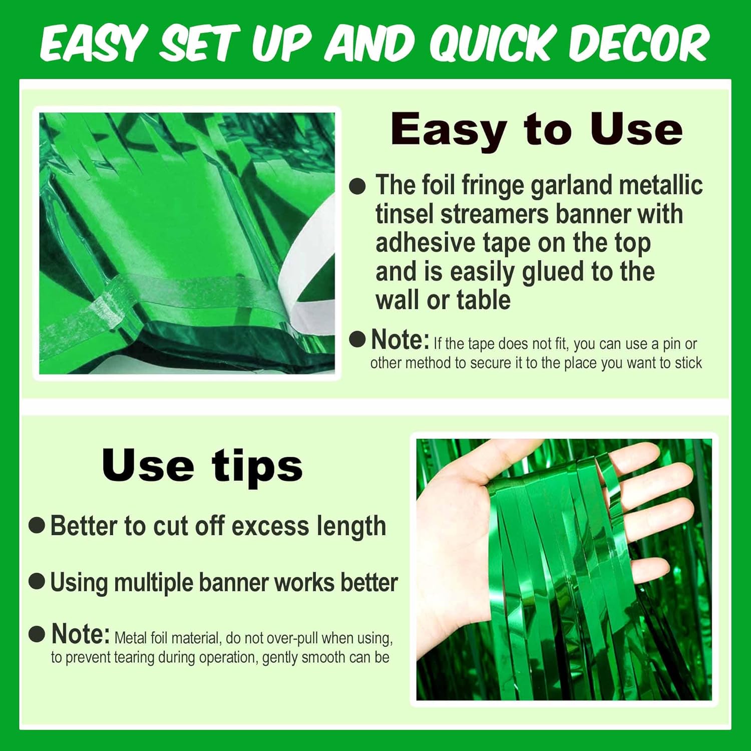 4 Pack 10 Ft Green Foil Fringe Garland Metallic Streamers Tinsel Banner Wall Hanging Garland Backdrop for Parade Floats, Halloween, Christmas, Thanksgiving, New Year Party Decorations