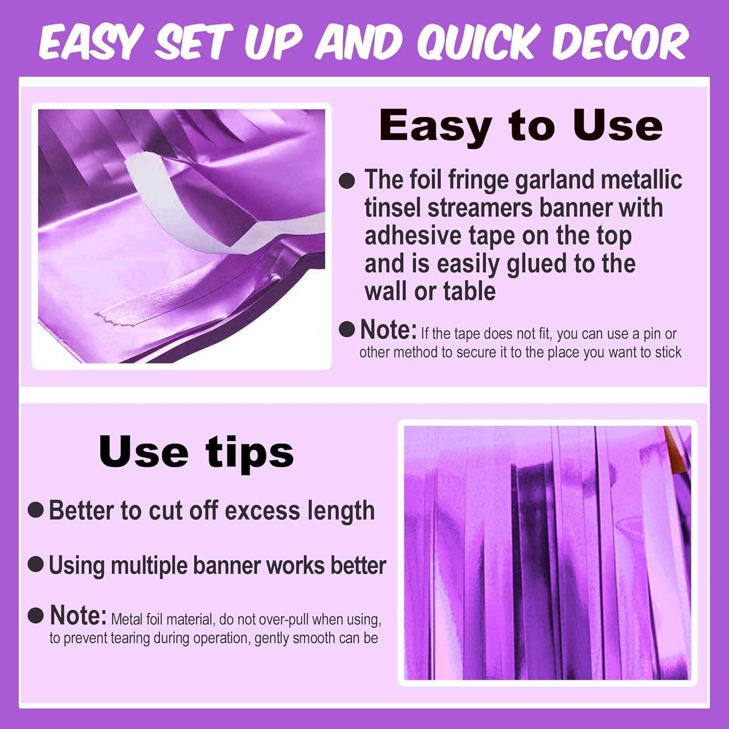 - Easy to Use: Tinsel foil fringe garland banner streamers the back has double-sided tape, gently peel double-sided tape off and it would be very easy to paste on wall, window, table, door, parade float or anywhere you want to decorate, add some festive atmosphere to the party