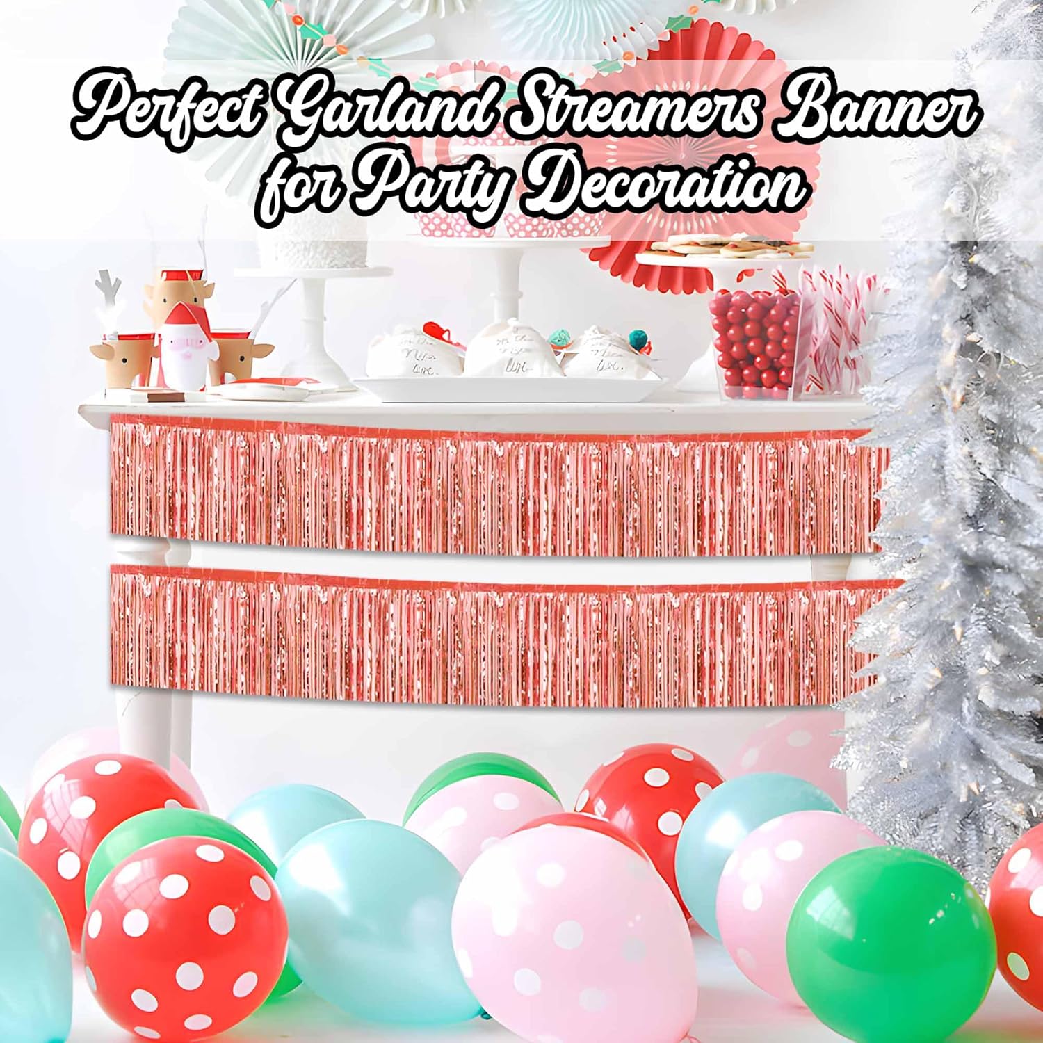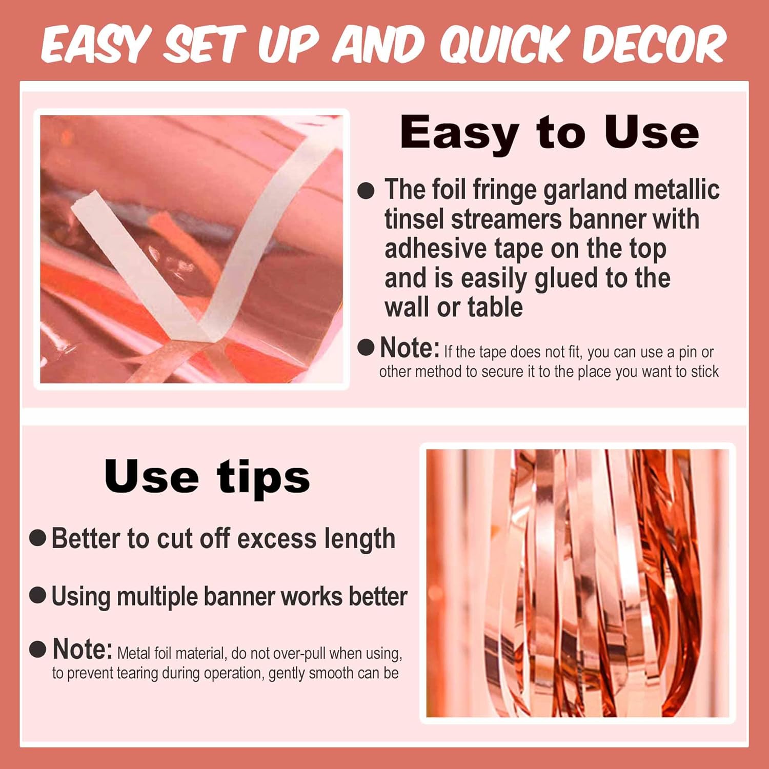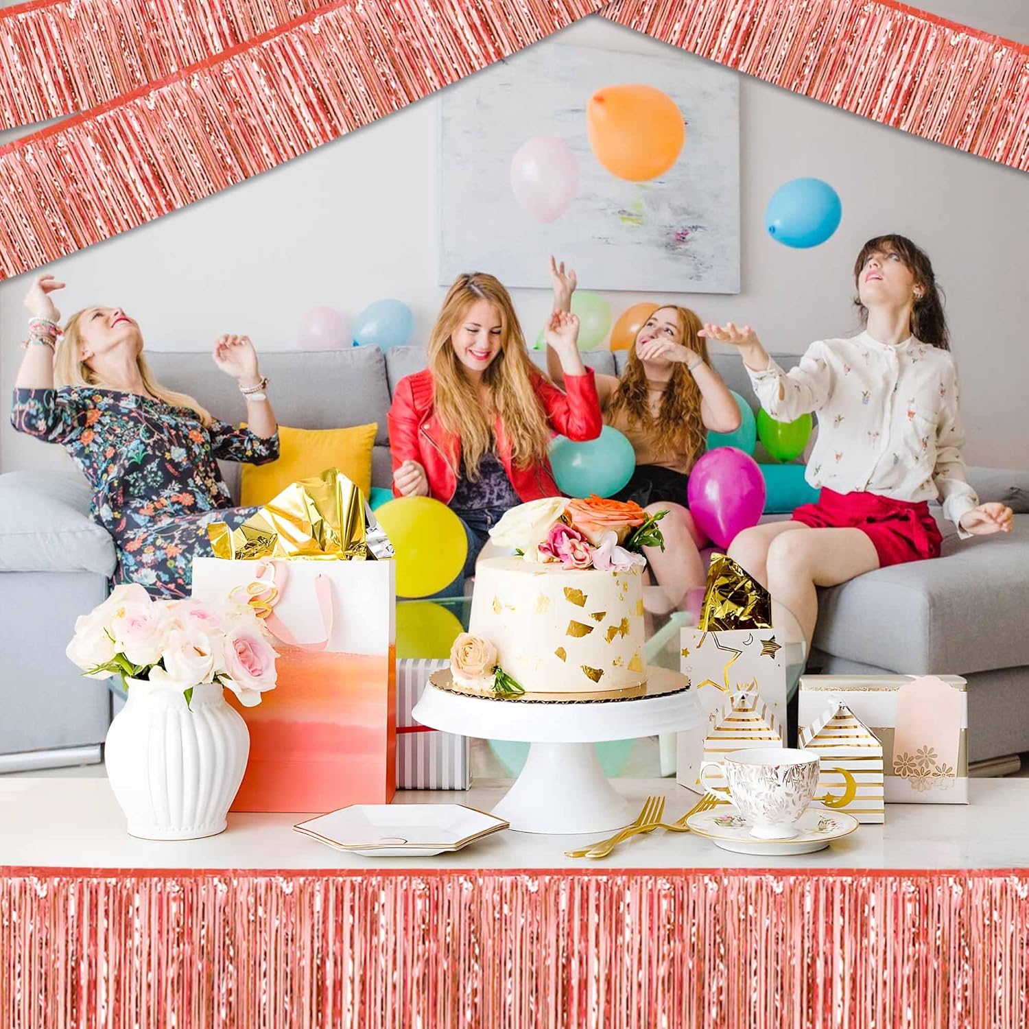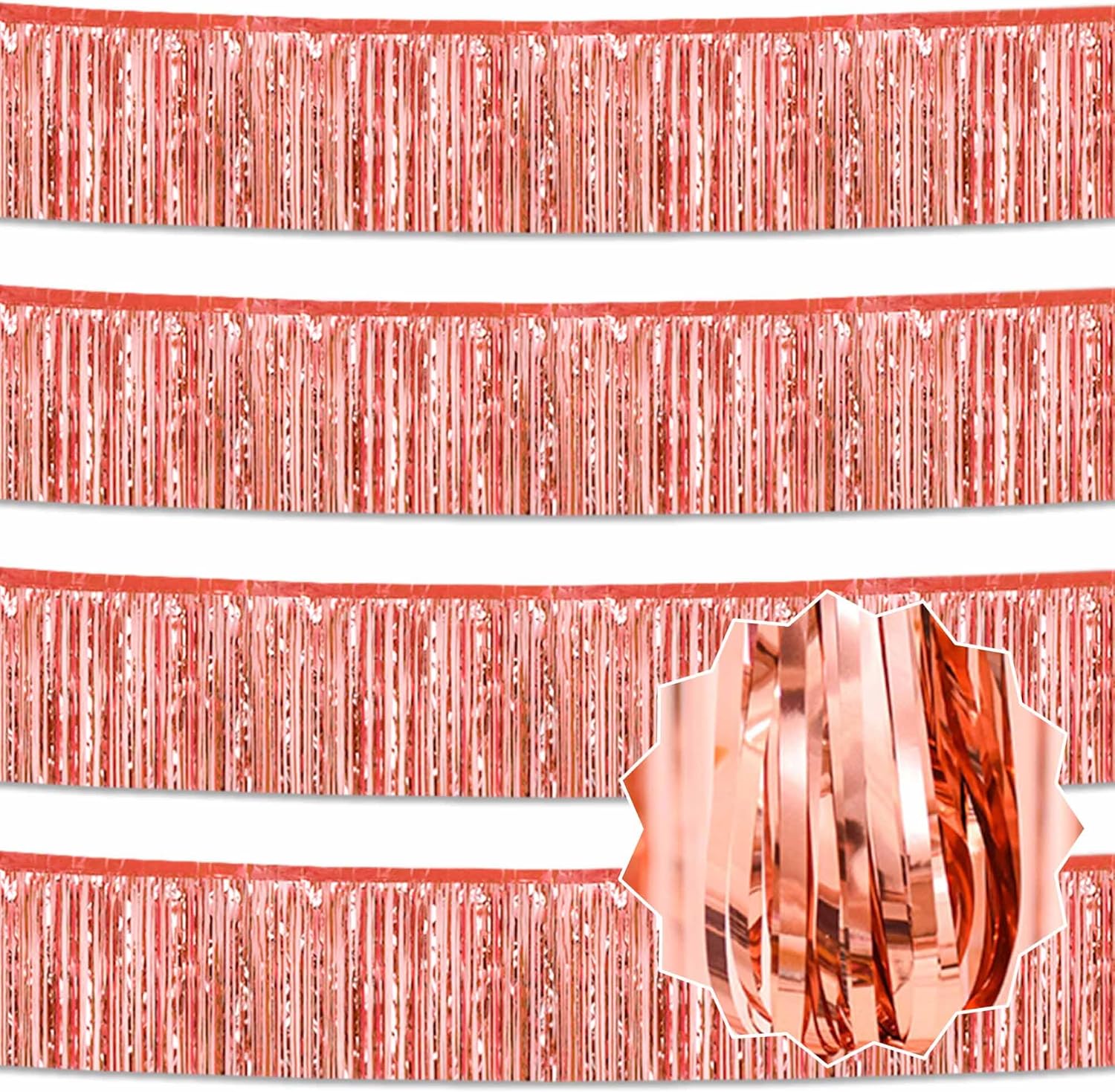 4 Pack 10 Ft Rose Gold Foil Fringe Garland Metallic Streamers Tinsel Banner Wall Hanging Garland Backdrop for Parade Floats, Halloween, Christmas, Thanksgiving, New Year Party Decorations