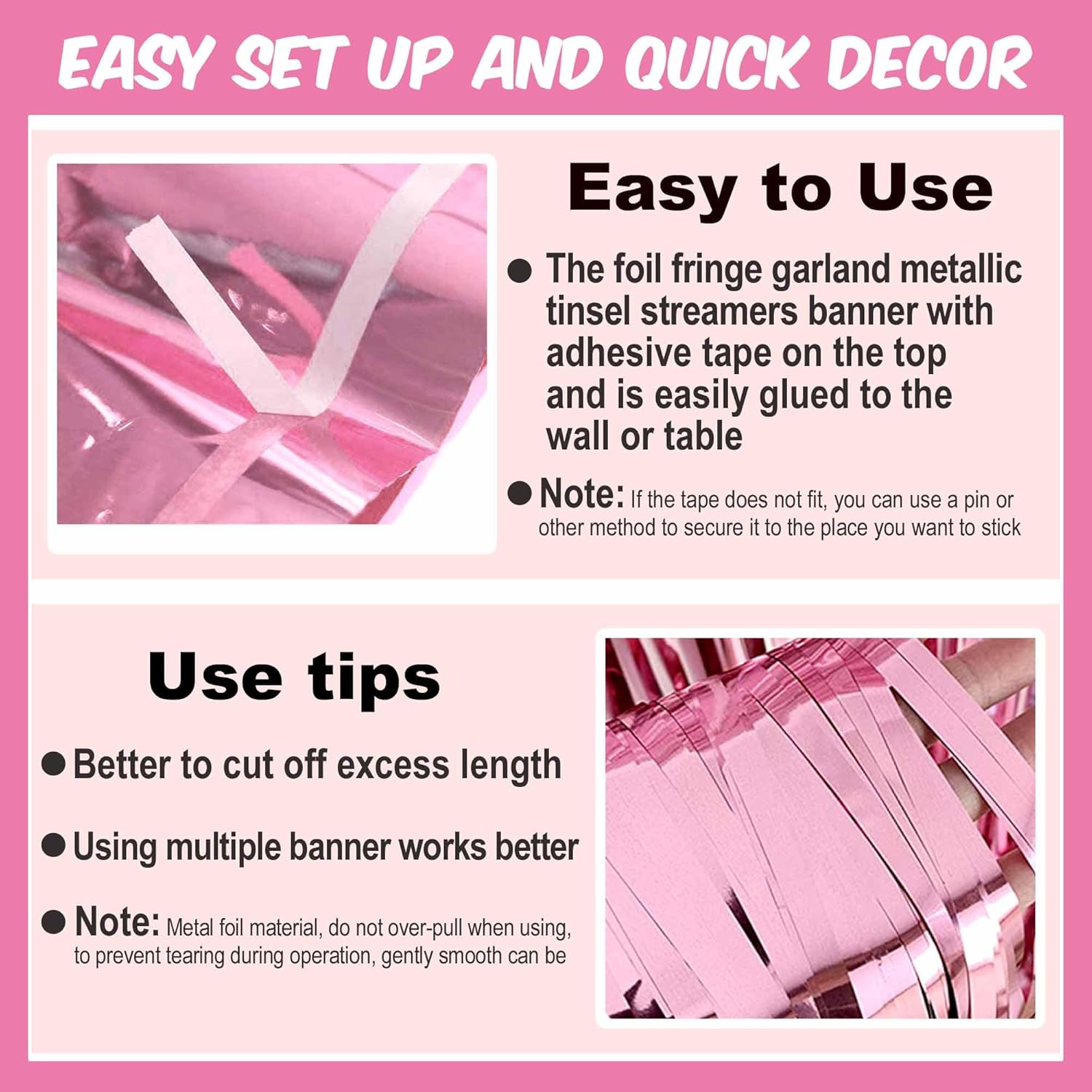 - Easy to Use: Tinsel foil fringe garland banner streamers the back has double-sided tape, gently peel double-sided tape off and it would be very easy to paste on wall, window, table, door, parade float or anywhere you want to decorate, add some festive atmosphere to the party