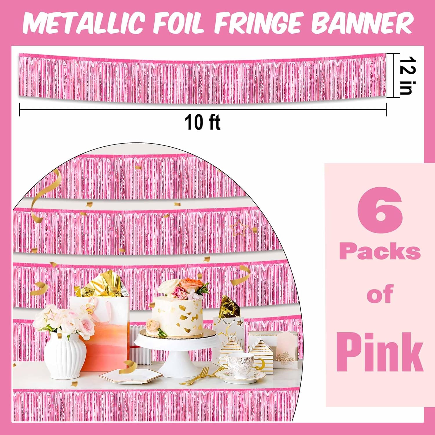 6 Pack 10 Ft Pink Foil Fringe Garland Metallic Streamers Tinsel Banner Wall Hanging Garland Backdrop for Parade Floats, Halloween, Christmas, Thanksgiving, New Year Party Decorations