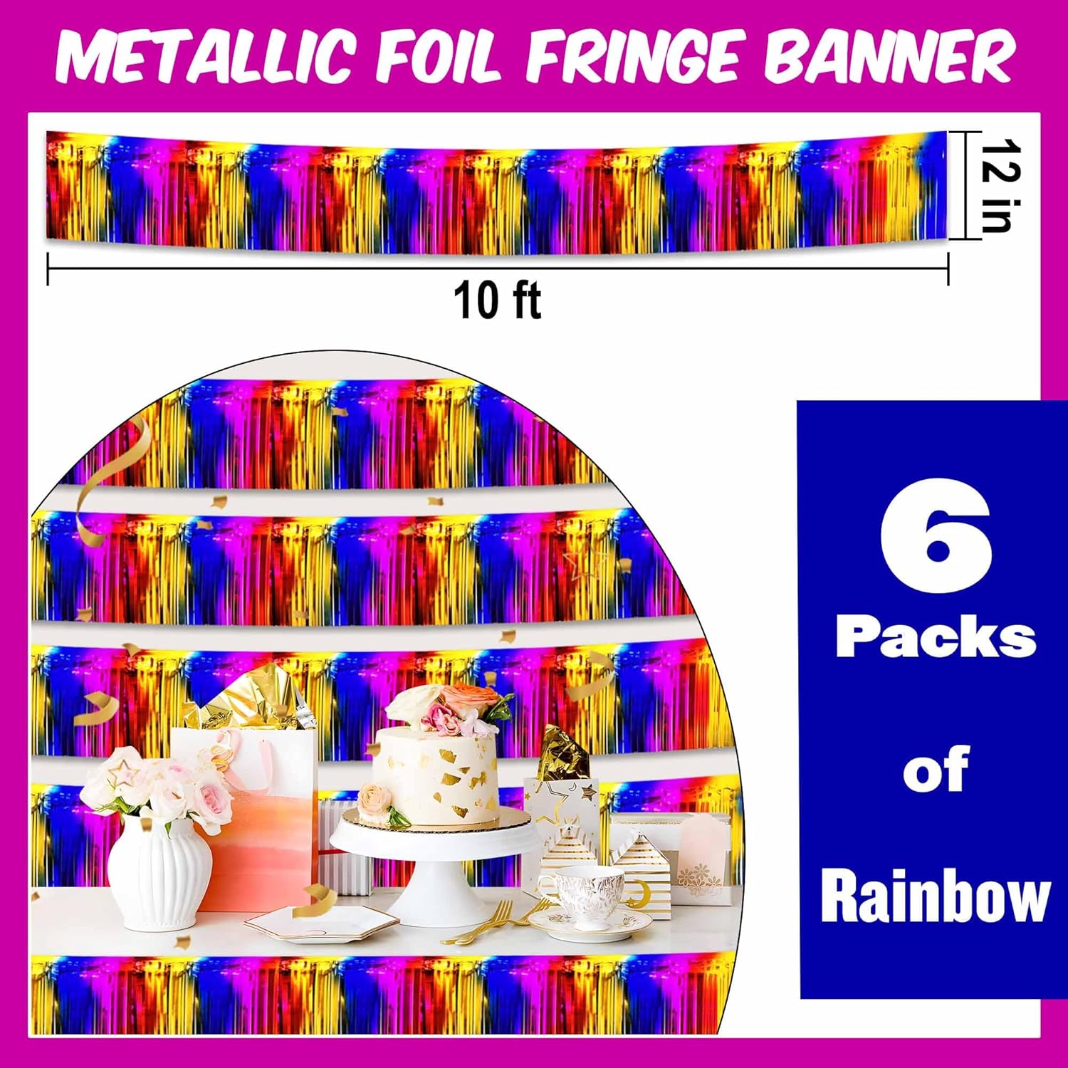 6 Pack 10 Ft Rainbow Foil Fringe Garland Metallic Streamers Tinsel Banner Wall Hanging Garland Backdrop for Parade Floats, Halloween, Christmas, Thanksgiving, New Year Party Decorations