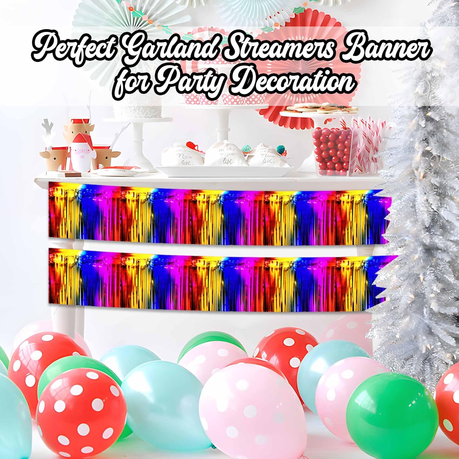 - Multi-Color Options: The foil fringe garland banner streamers is made of metallic foil, shiny and bright. This foil fringe garland banner streamers provide a variety of color options, to meet different party needs. Tinsel foil fringe garland banner streamers would make your party more impressive