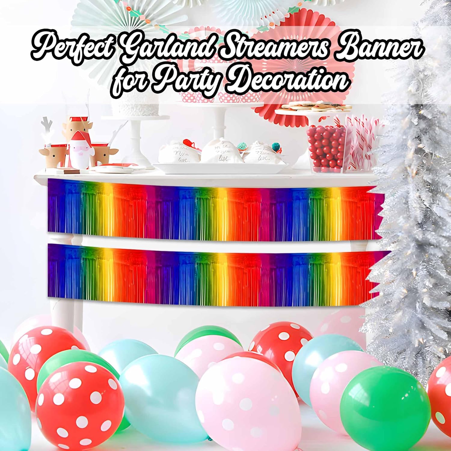 - Multi-Color Options: The foil fringe garland banner streamers is made of metallic foil, shiny and bright. This foil fringe garland banner streamers provide a variety of color options, to meet different party needs. Tinsel foil fringe garland banner streamers would make your party more impressive
