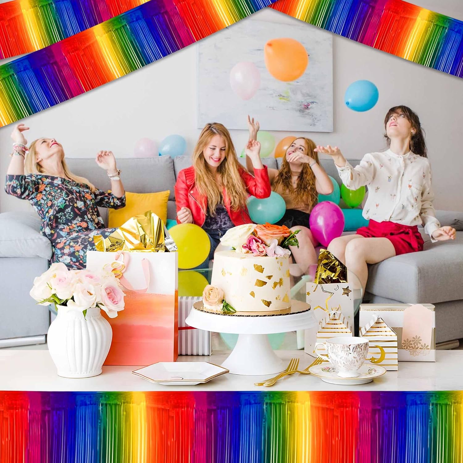 4 Pack 10 Ft Dark Rainbow Foil Fringe Garland Metallic Streamers Tinsel Banner Wall Hanging Garland Backdrop for Parade Floats, Halloween, Christmas, Thanksgiving, New Year Party Decorations