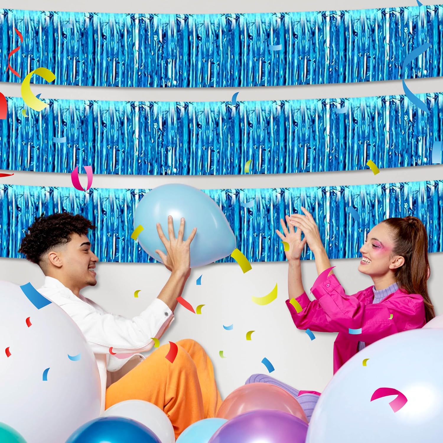 - Use Tips: You can cut the foil fringe garland banner streamers with scissors into the suitable Length, assemble the party streamers side by side to make the backdrop larger. If you want to make your foil fringe garland look fuller and thicker, you can overlap two garland, also overlap foil fringe garland in different colors to create a beautiful party easily