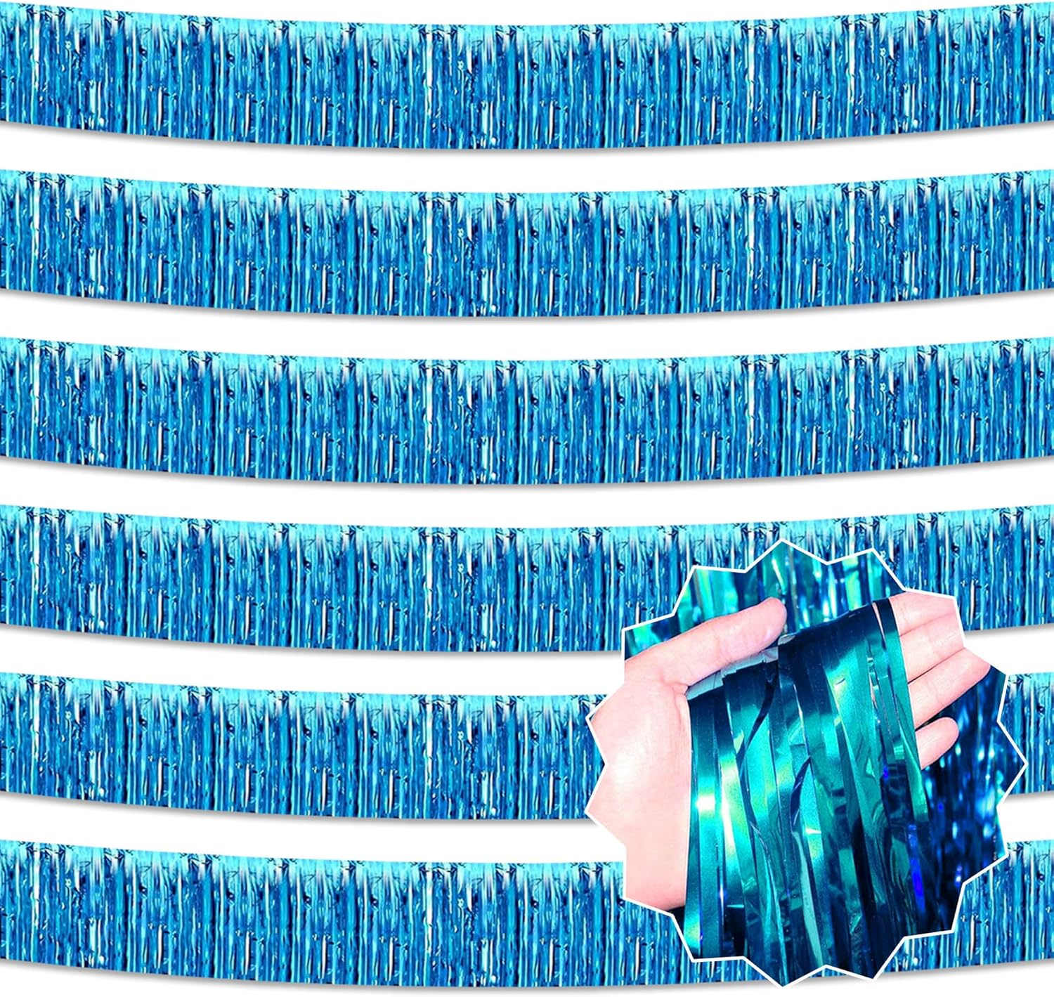 6 Pack 10 Ft Lake Blue Foil Fringe Garland Metallic Streamers Tinsel Banner Wall Hanging Garland Backdrop for Parade Floats, Halloween, Christmas, Thanksgiving, New Year Party Decorations