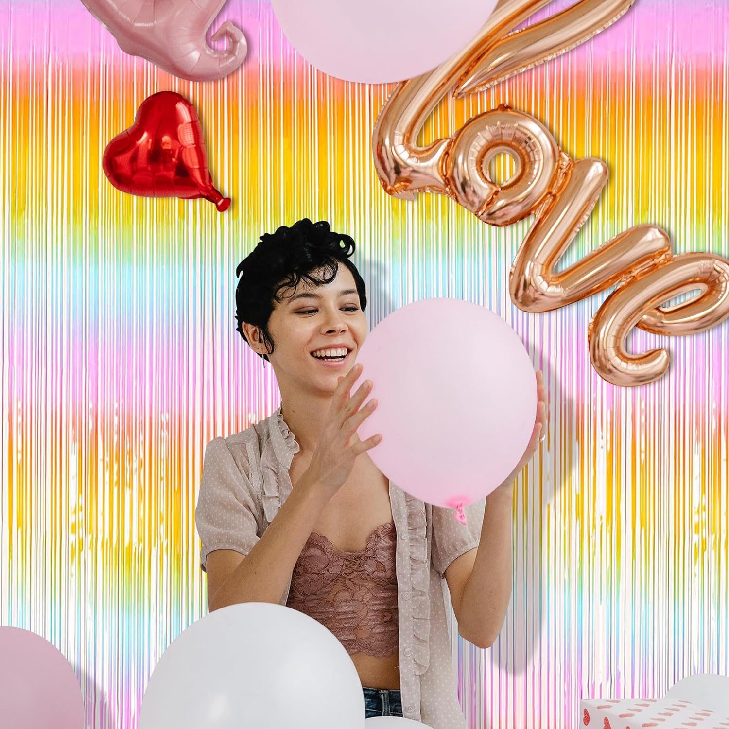 10 Pack Easter Foil Fringe Curtains 3.2ft x 8.2ft Rainbow Backdrop Curtains Photo Booth Background for Birthday Party Decoration Easter Decoration (Colorful)