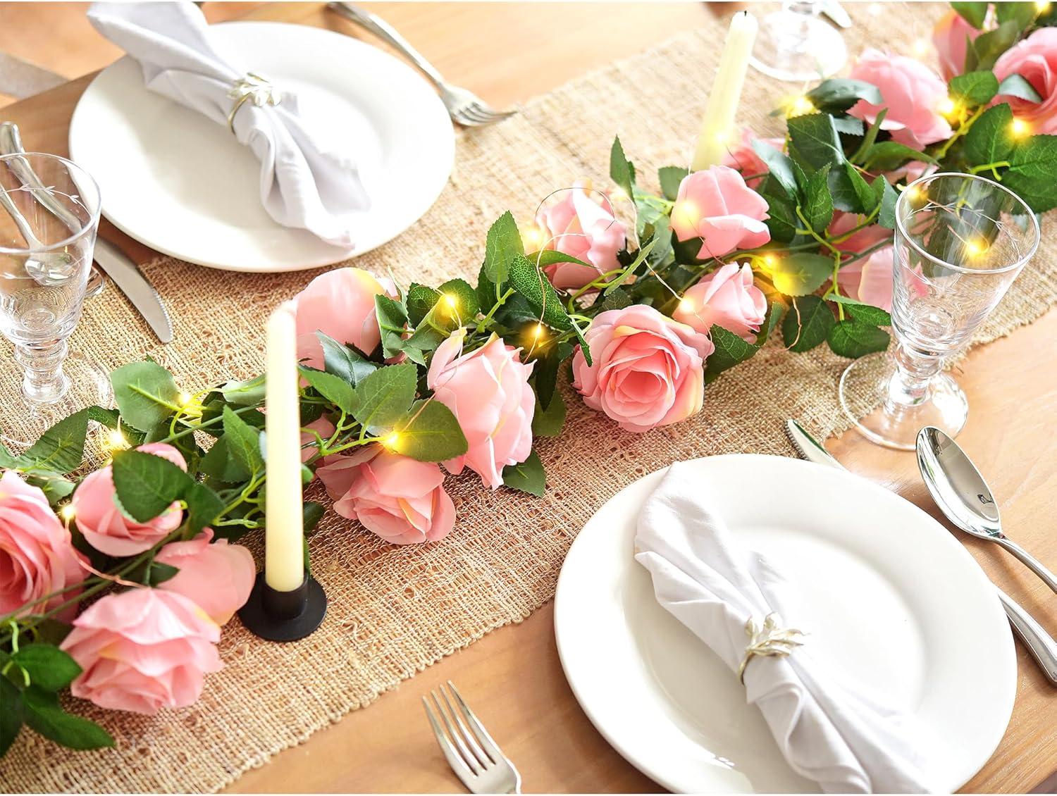 - Realistic faux roses with a heavenly glow: The silk-like pink roses catch the soft glow of the lights, creating a heavenly atmosphere that turns any room into your own personal sanctuary. Whether used as wedding backdrops or table runners, these vines with lights add a touch of nature and beauty to any setting.