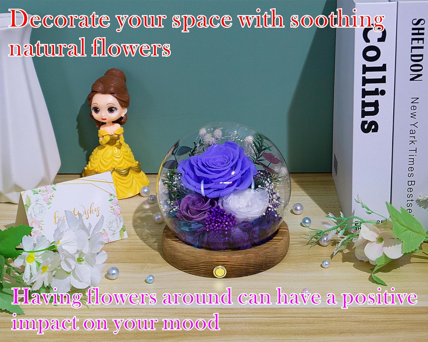 - ♥Please note♥:1. Due to the delicateness of natural flowers, opening the glass dome is not recommended as it can lead to unintended damage to the flowers. 2. Since these are real flowers crafted by hand and not mass-produced by machine, there may be slight variations in certain cases. 3. loose and incorrect battery insert will result in lights not turning on. If that's the case, simply remove the batteries and reinsert them correctly.