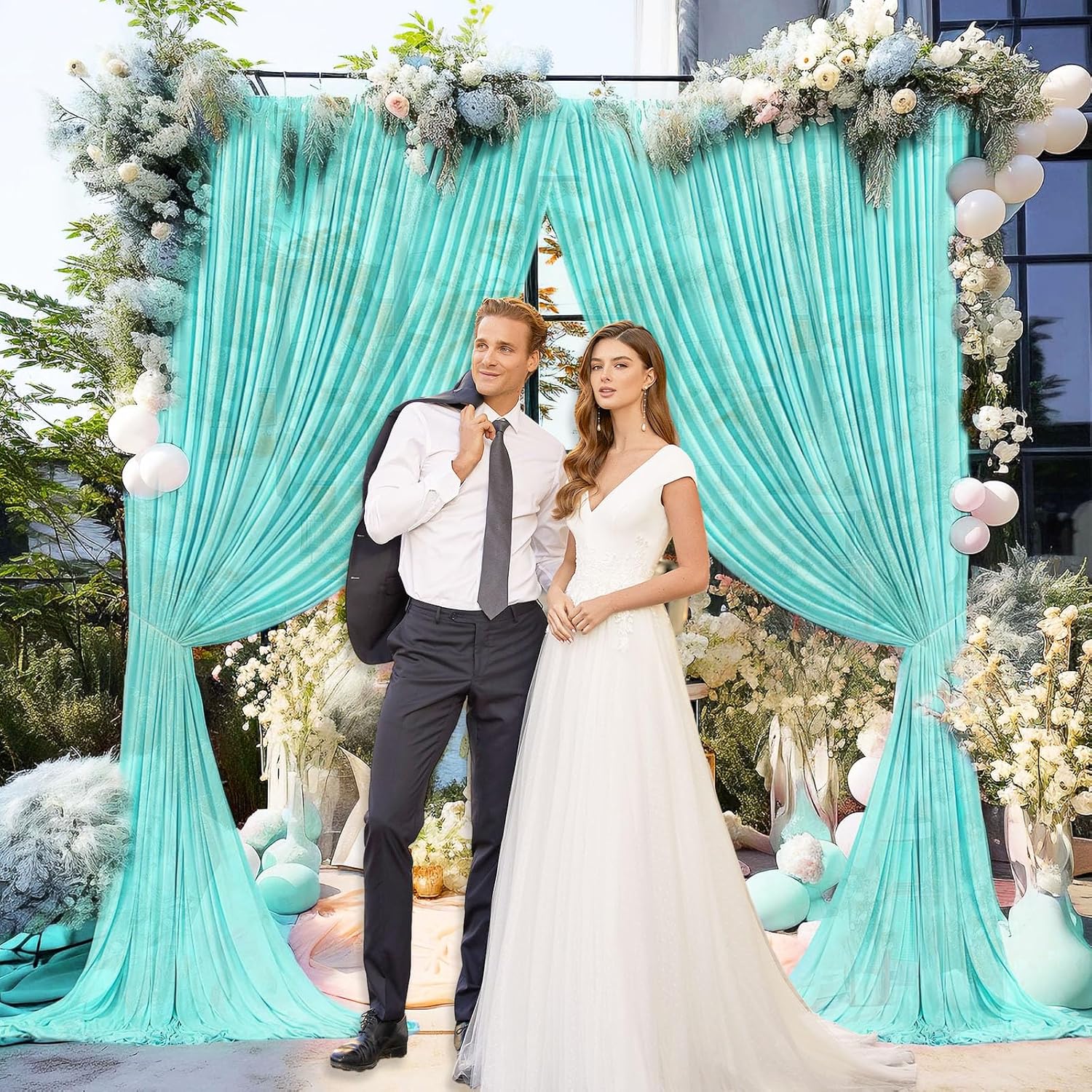 10 x 10 Feet Blue-Green Backdrop Curtain for Partie, Background Curtains for Photoshoot, Birthday, Wedding, Halloween, Thanksgiving, Christmas Day, New Year Party Decorations 5Ft x 10Ft, 2 Panels