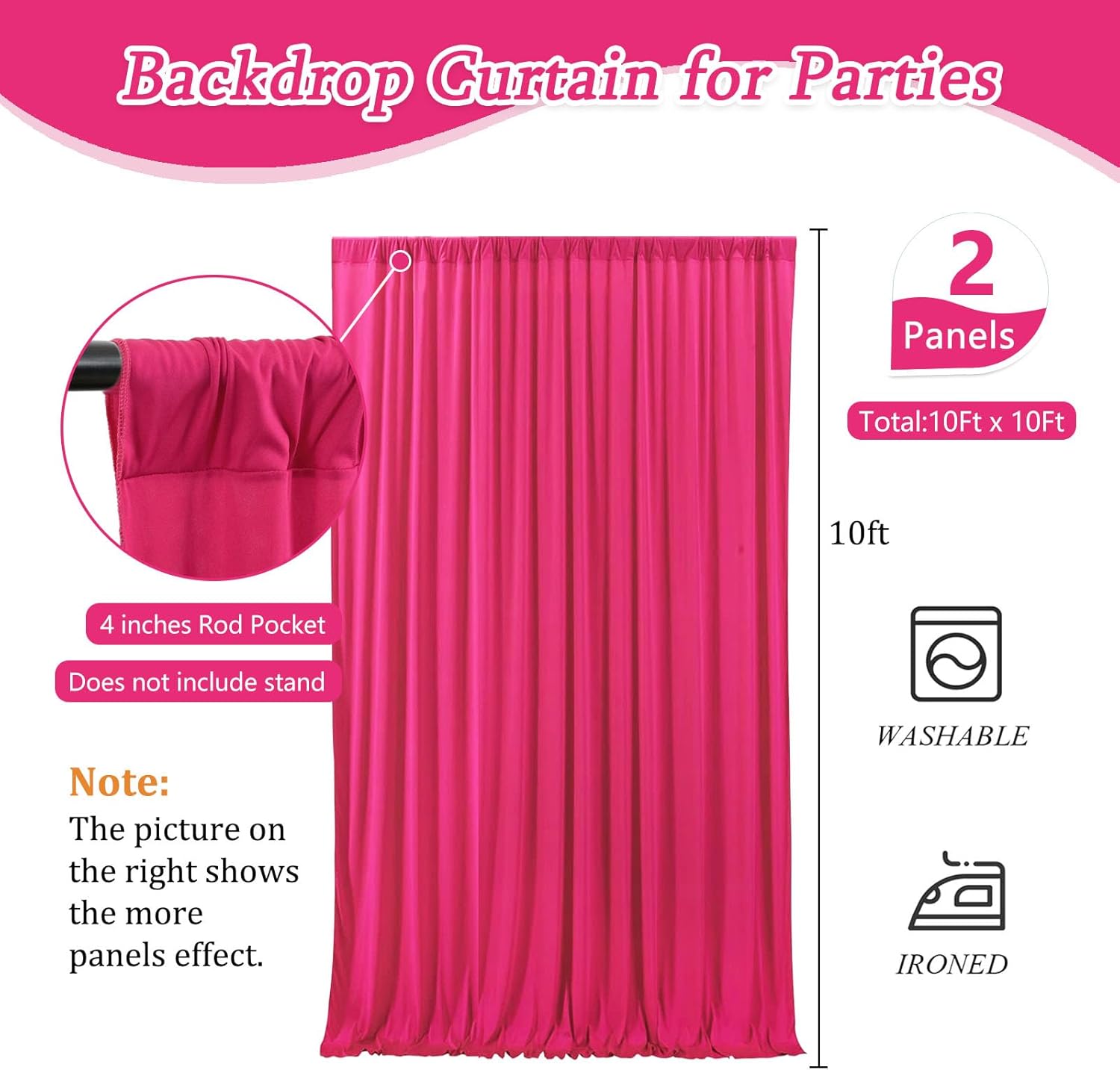 10 x 10 Feet Fuchsia Backdrop Curtain for Partie, Background Curtains for Photoshoot, Birthday, Wedding, Halloween, Thanksgiving, Christmas Day, New Year Party Decorations 5Ft x 10Ft, 2 Panels