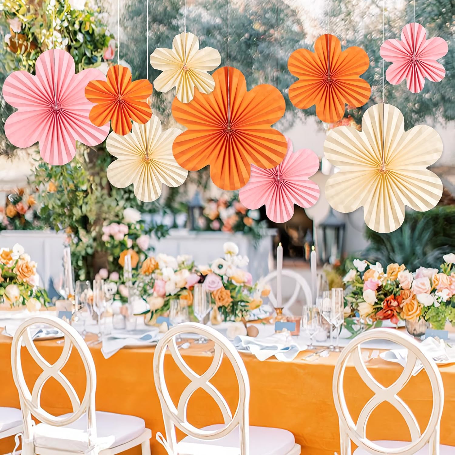 Paper Flowers Decorations for Wall Orange Paper Fans Classroom Decoration Paper Floral Backdrop Decor Paper Fans Decoration Hanging Paper Fans Pink Flower Wall Decor, Set of 9