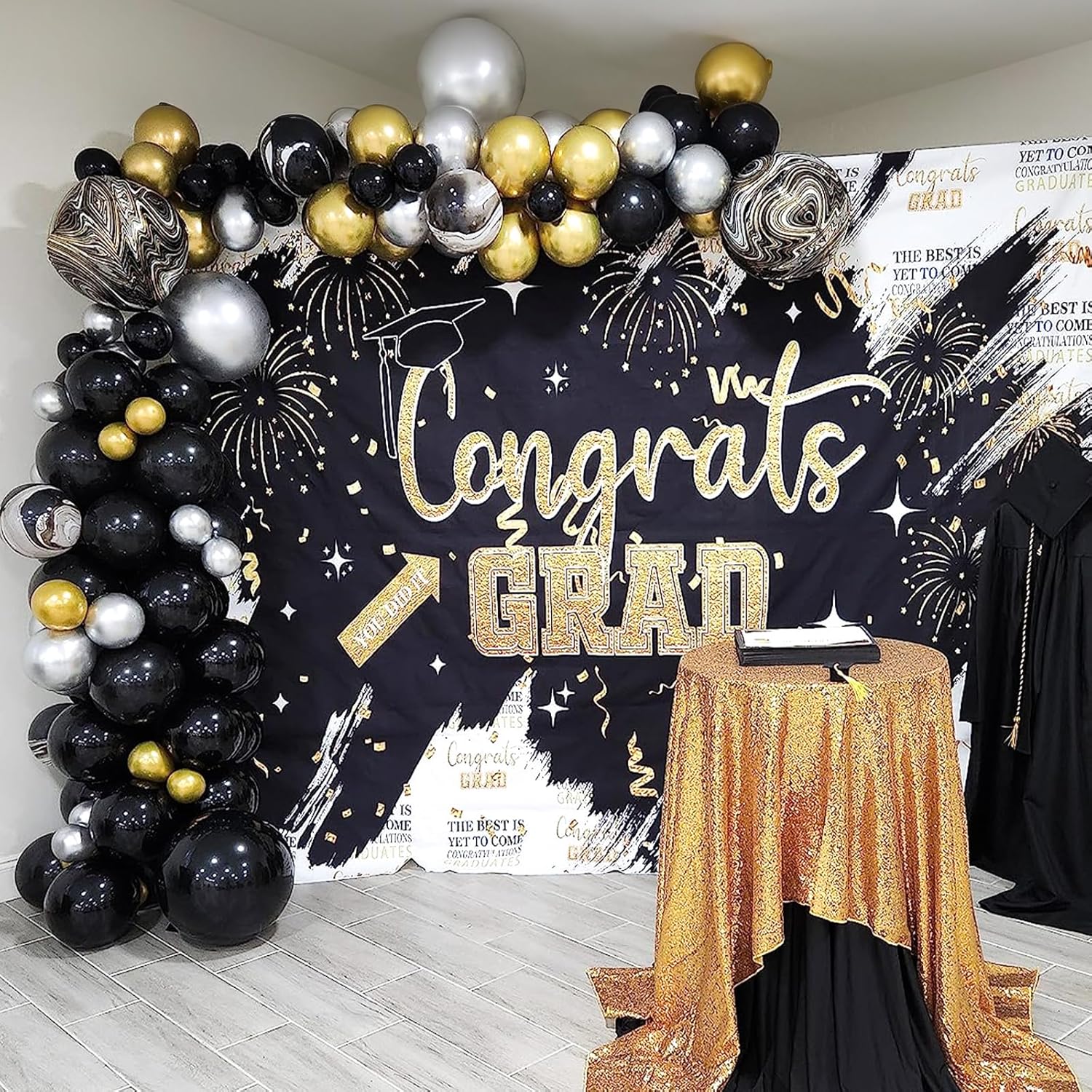 Black and Gold Balloons Set, 12 Inch Black Gold Silver Balloon New Year Eve Party Decoration Black Silver Latex Balloons for New Year Party Birthday Wedding Graduation Banquet Decoration