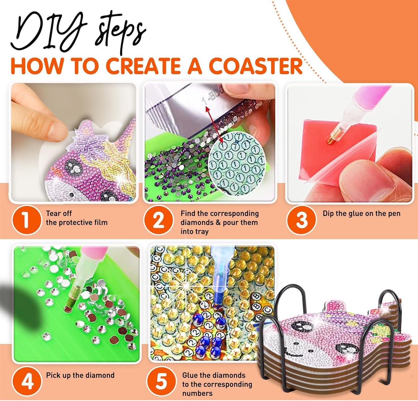 - Ideal Gift: Our Unicorn diamond painting coasters with holder make an ideal gift for DIY craft enthusiasts. The DIY diamond art coasters kit can be given to your family and friends on birthdays, Christmas, and it is suitable for both children and adults.
