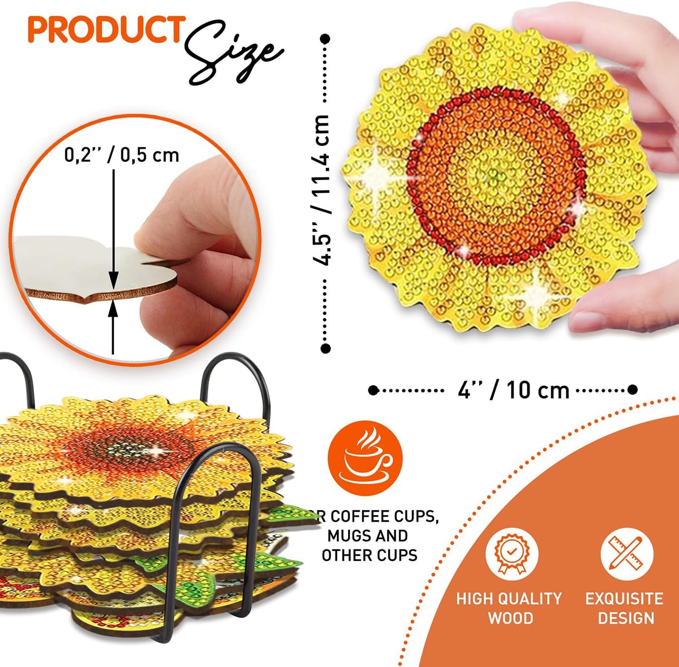 - Ideal Gift: Our Sunflower diamond painting coasters with holder make an ideal gift for DIY craft enthusiasts. The DIY diamond art coasters kit can be given to your family and friends on birthdays, Christmas, and it is suitable for both children and adults.