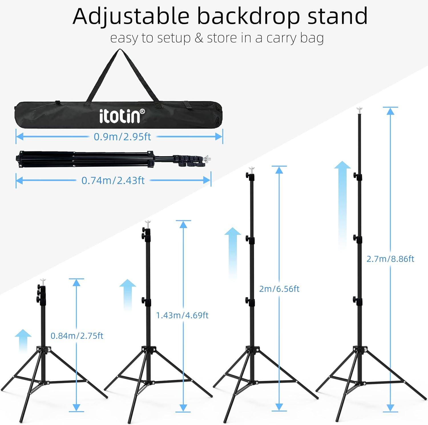 - 【Adjustable Stand for Backdrop】The height of the background stand is adjustable from 2.7 feet to 9 feet. The crossbar is retractable and freely adjustable in width, it can be adjusted up to 3 metres/10 feet. You can adjust the width to suit different sizes of backdrops.