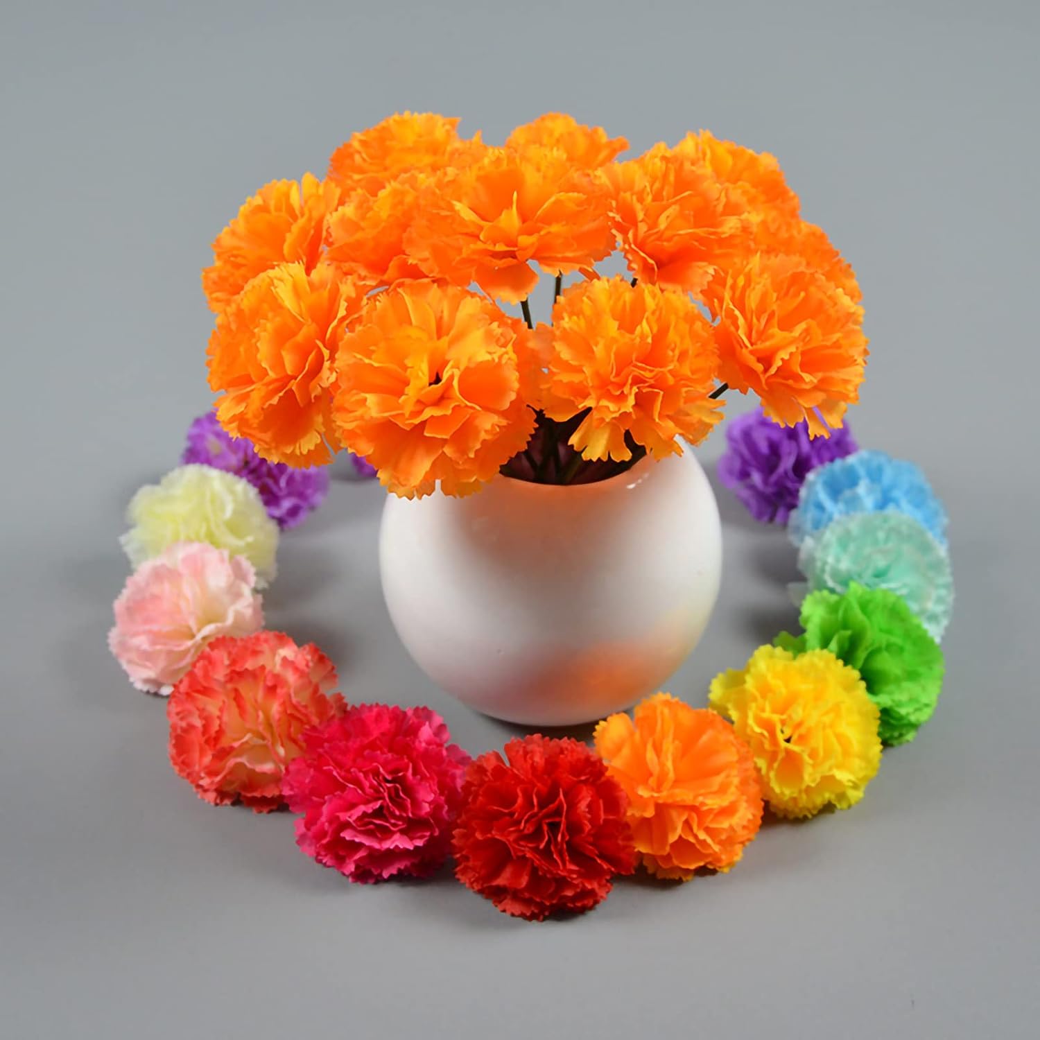 - PREMIUM MATERIALS: The life of a real marigold is short. Why not chose an alternative one. The artificial marigolds are made of silk and plastic, durable for years and remain vivid. The stem is flexible and easy for flower arrangement. These will be your great best decoration in the festival- such as Diwali Halloween Christmas.