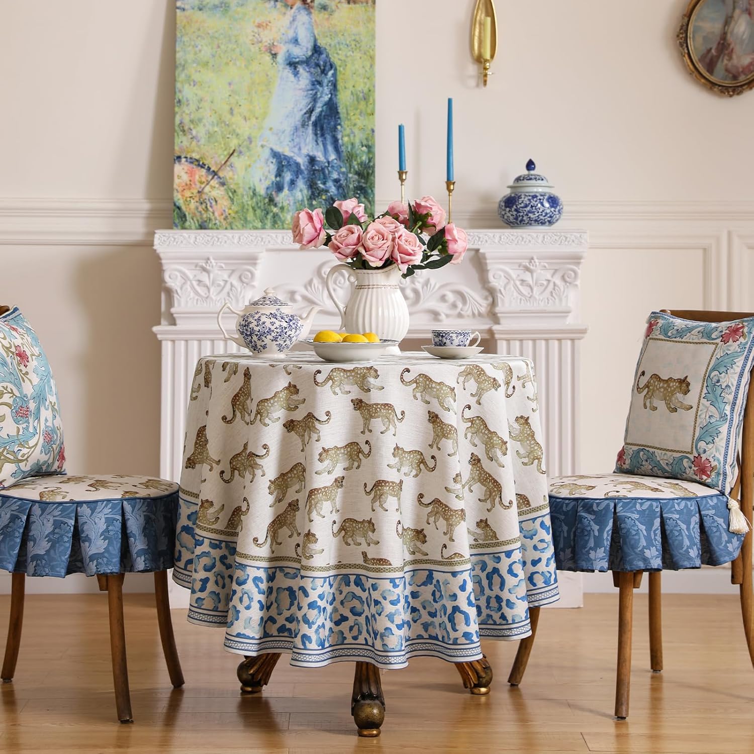 patdrea Designer Leopard Animal Linen Round Table Cloth,Soft Breathable Anti-Wrinkle Tablecloth,Decoration Table Cover for Kitchen Dining,Holiday Christmas,Thanksgiving,Party,Diameter 55"-from