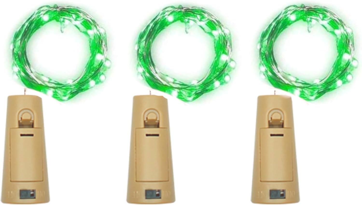 Wine Bottle Lights with Cork, Battery Operated 20 LED Cork Shape Silver Wire Colorful Fairy Mini String Lights(No Bottles) for DIY, Party, Decor, Christmas, Halloween,Wedding (3, Green)
