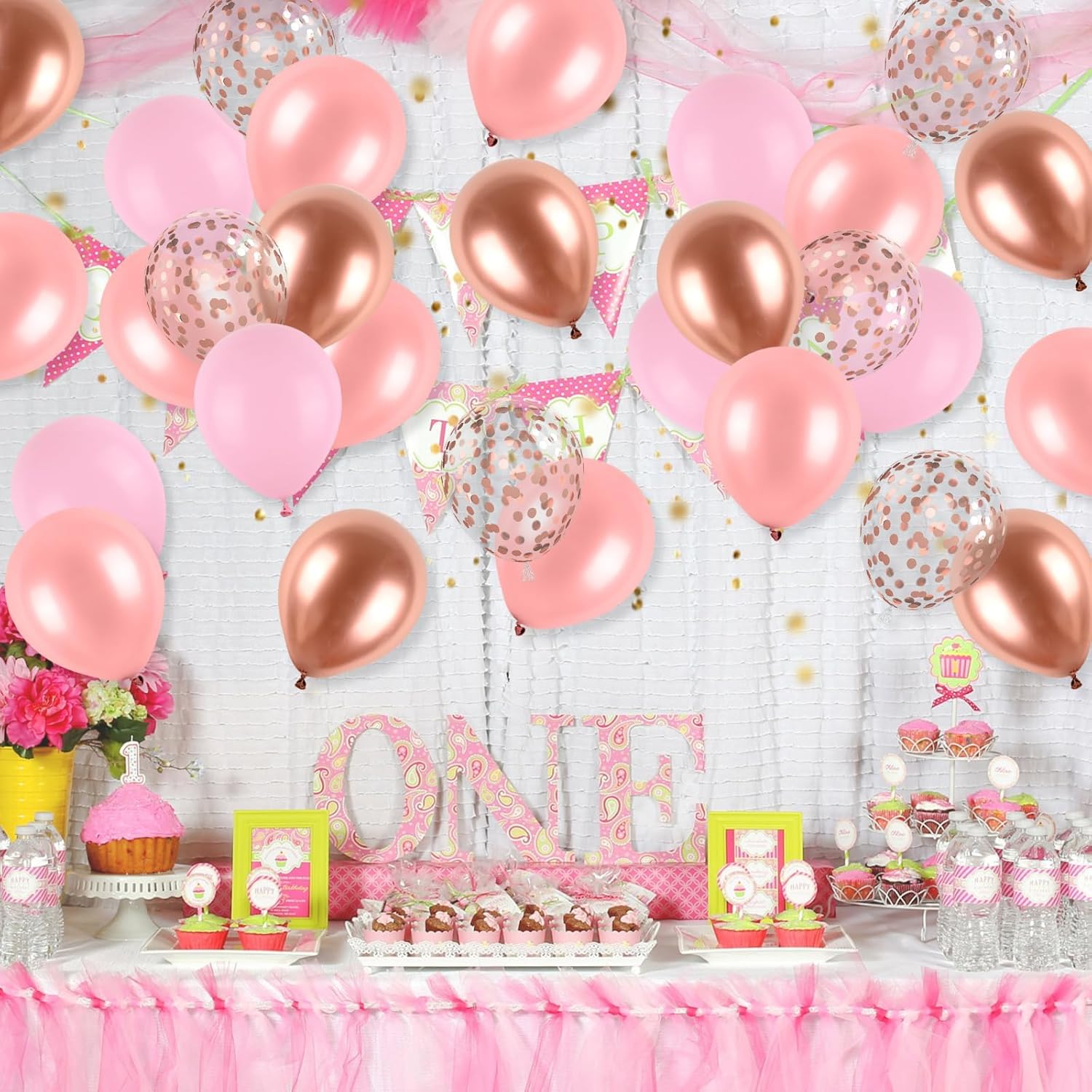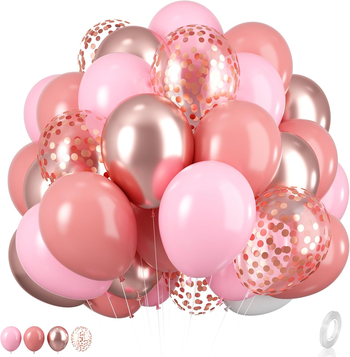 - 12 Inch rose gold pink balloons: Package content includes 9 pcs rose gold balloons, 5 pcs confetti rose gold balloons, 9 pcs pink balloons,7 pcs retro pink balloons, a balloon ribbon.The color combination meets all your party imagination.