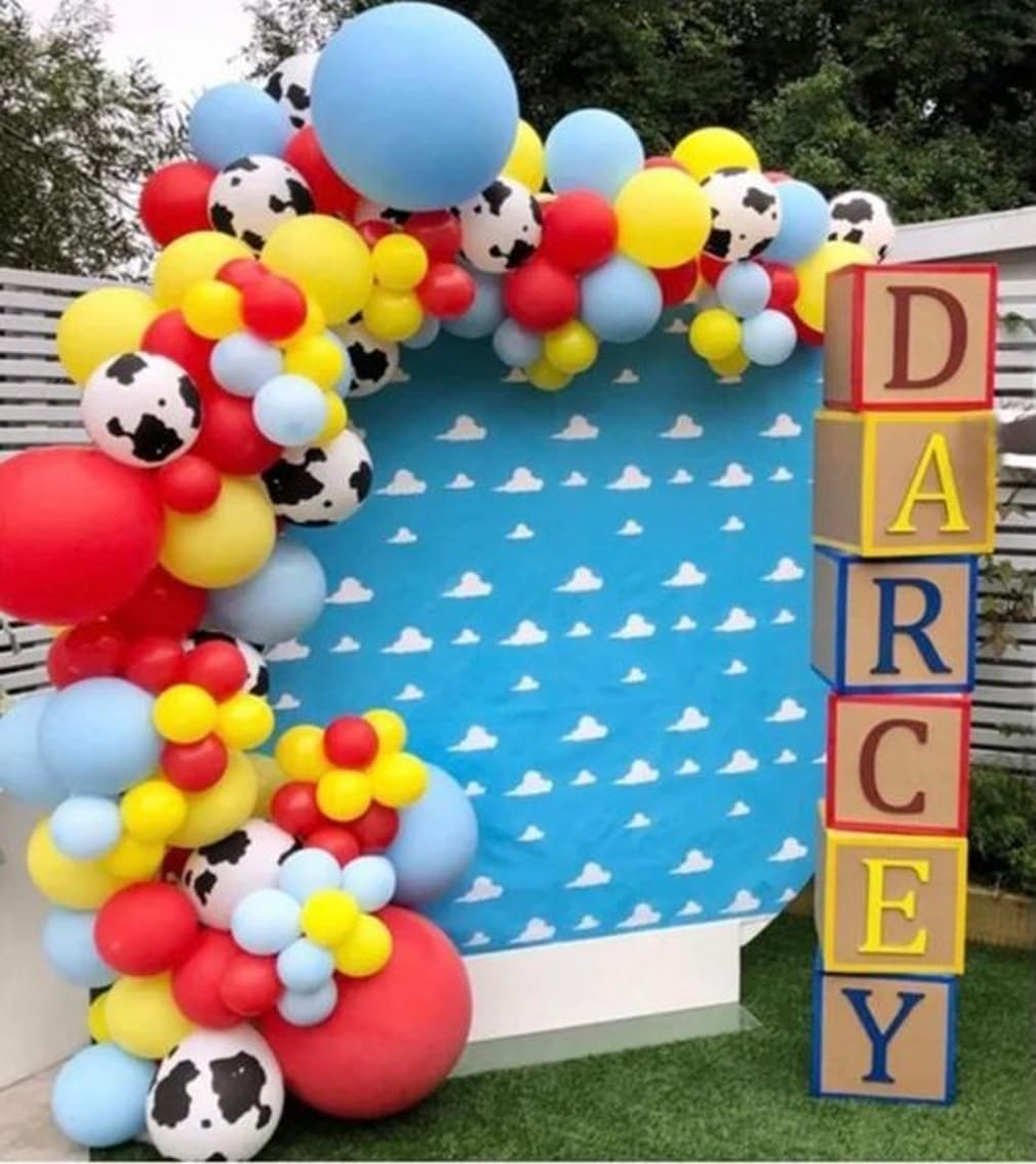 Color Balloons - 12 Inch Red, Blue, Yellow Cow Print Sky Blue Cloud Story Balloons for Party Themed Decor