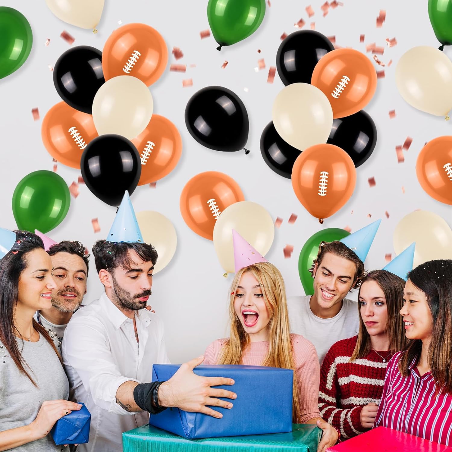 - 12 Inch football balloons: Package content includes 9 pcs football balloons, 7 pcs dark green balloons, 7 pcs beige balloons,7 pcs black balloons, a balloon ribbon.The color combination meets all your party imagination.