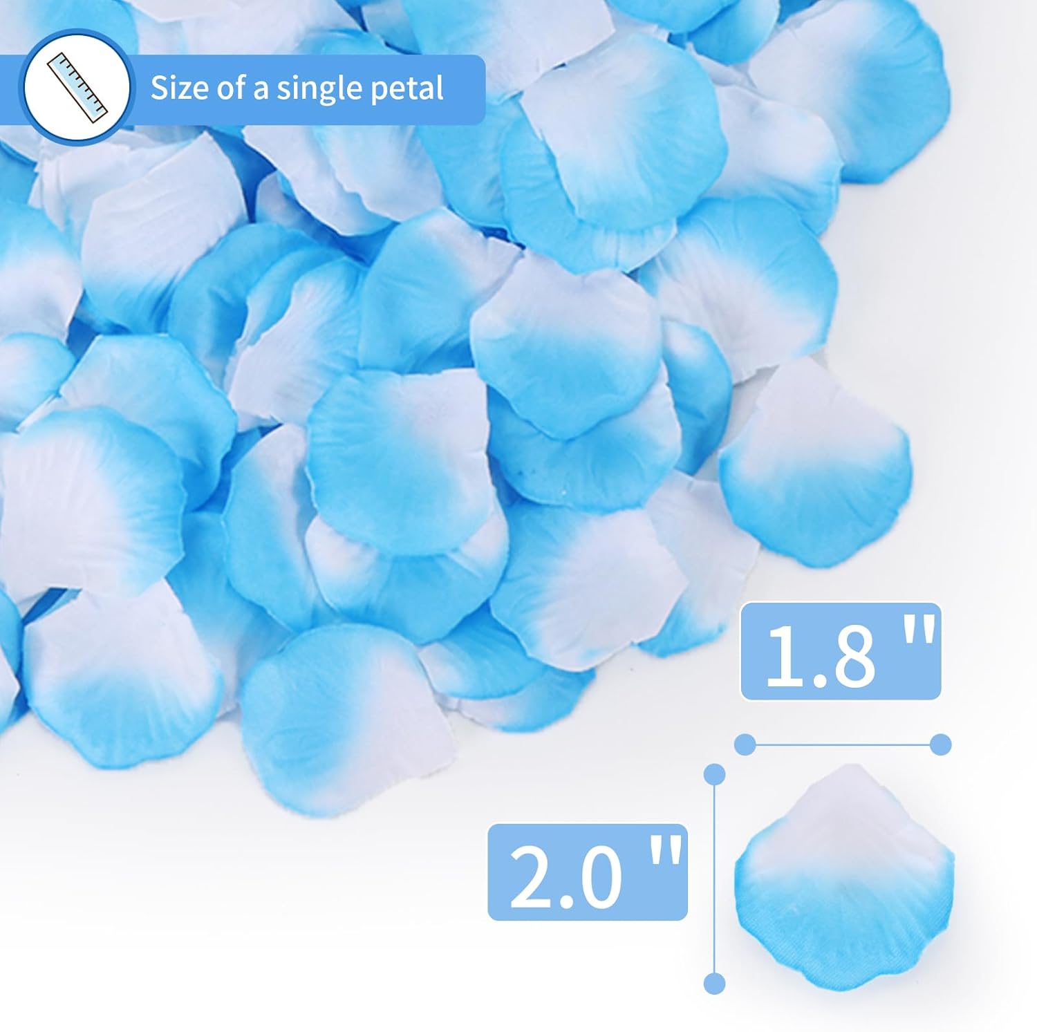 1000 Pcs Artificial Fake Rose Petals,Flower Petals for Romantic Night, Engagement, Party, Wedding, Event Flower Decorations, in Bulk(Light Blue and White)