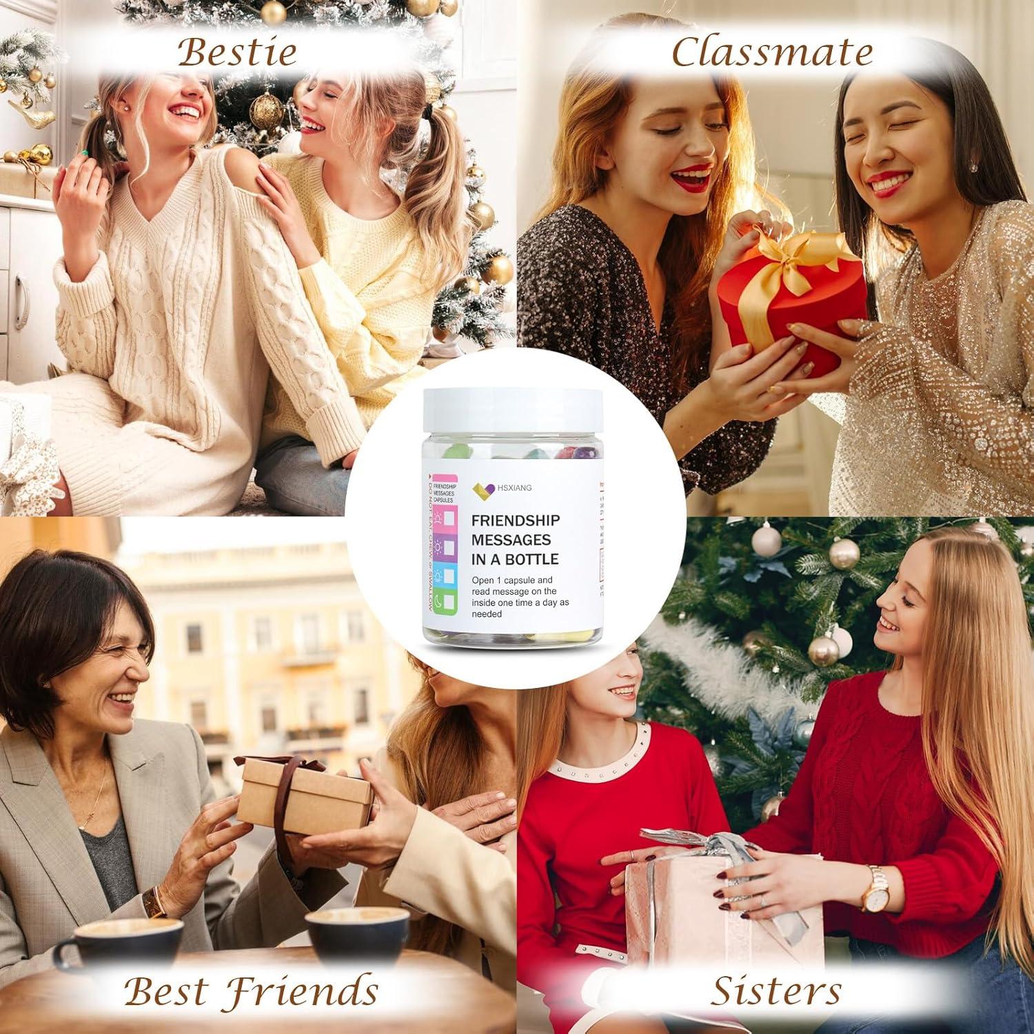 - FRIENDSHIP GIFTS:50 Pre-written messages in a bottle - each piece of paper already contains a friendship message;Surprise your best friend when they receive the gift.This gift shows that you really appreciate your friendship and reminds you that your relationship is very special, and no matter what, your friends are important to you.